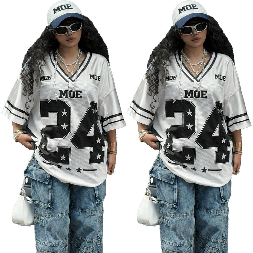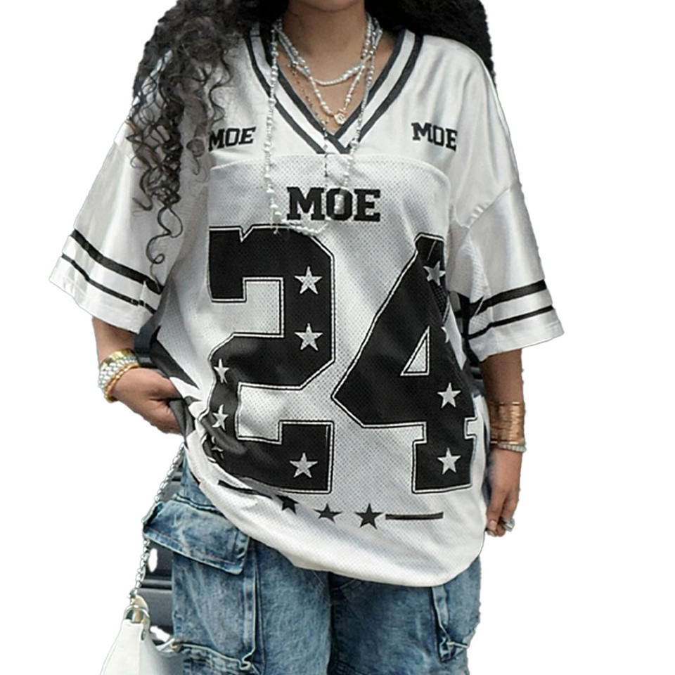 เสื้อผ้าแฟชั่นแนวเรซซิ่งสุดเทรนดี้ รุ่น MOE หมายเลข เสื้อยืดพิมพ์ลาย 24 แบบ โลโก้สั่งทำ ชุดกีฬา เสื้อสเวตเชิ้ต เสื้อฟุตบอลอเมริกัน