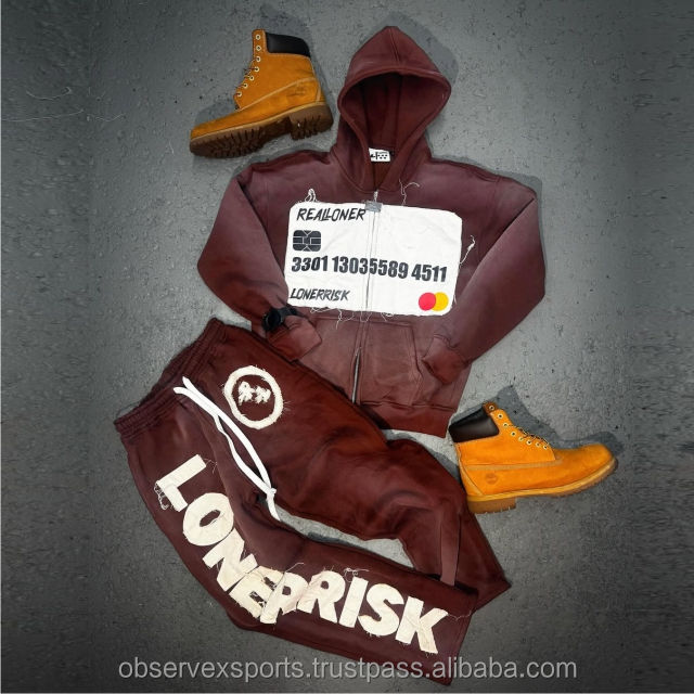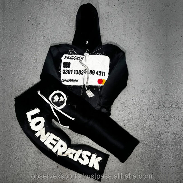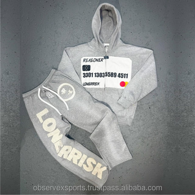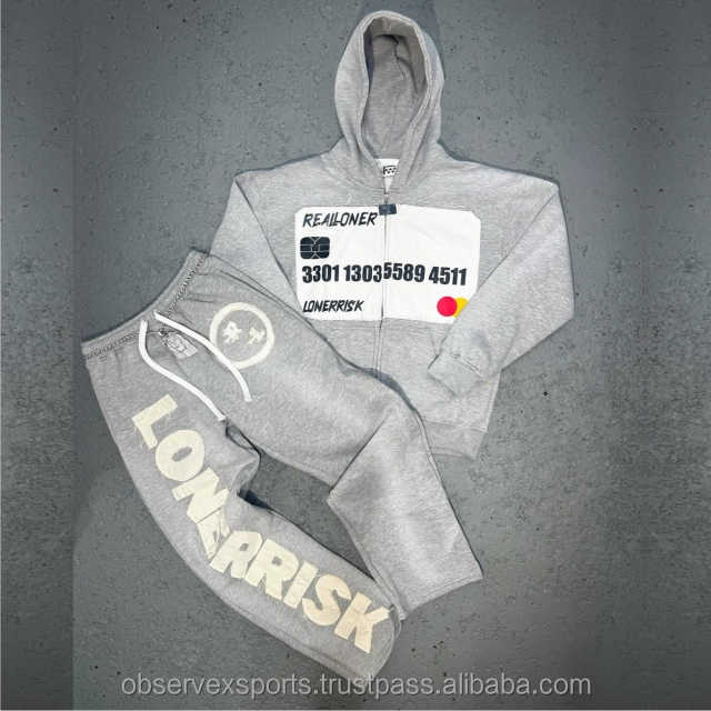 ชุดกีฬาพิมพ์ลายฮิปฮอป DTG ทันสมัยชุดวอร์มผ้ามีฮู้ดแบบรูดซิปผ้าหนา460 GSM ชุดวอร์มประดับพลอยเทียม
