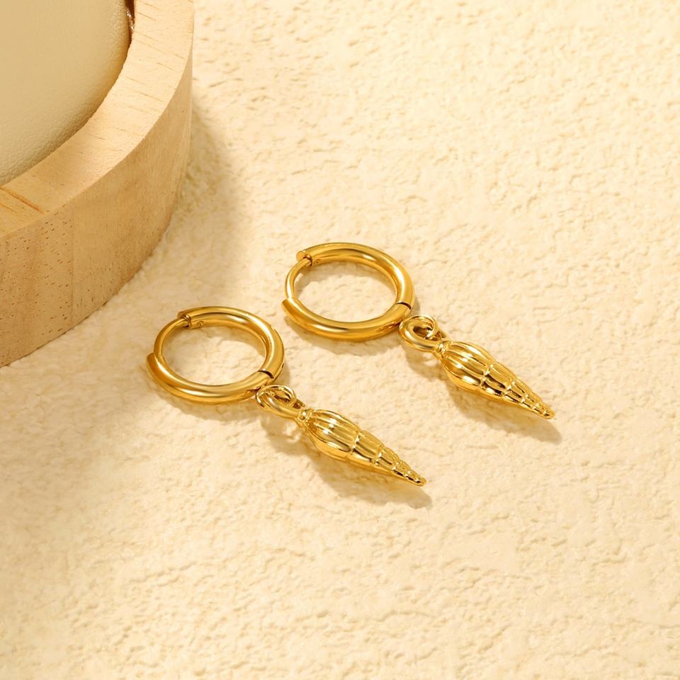 ต่างหูห่วงทรงทันสมัยสำหรับฤดูร้อน เครื่องประดับชายหาด ชุบทอง 18k สแตนเลสสตีล ไม่หมอง ต่างหูห้อยรูปเปลือกหอยสำหรับผู้หญิง