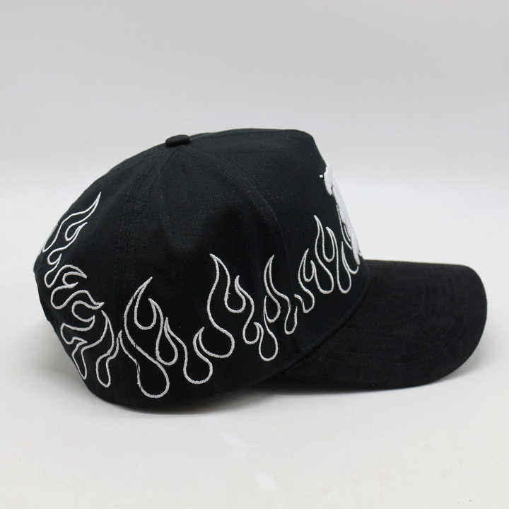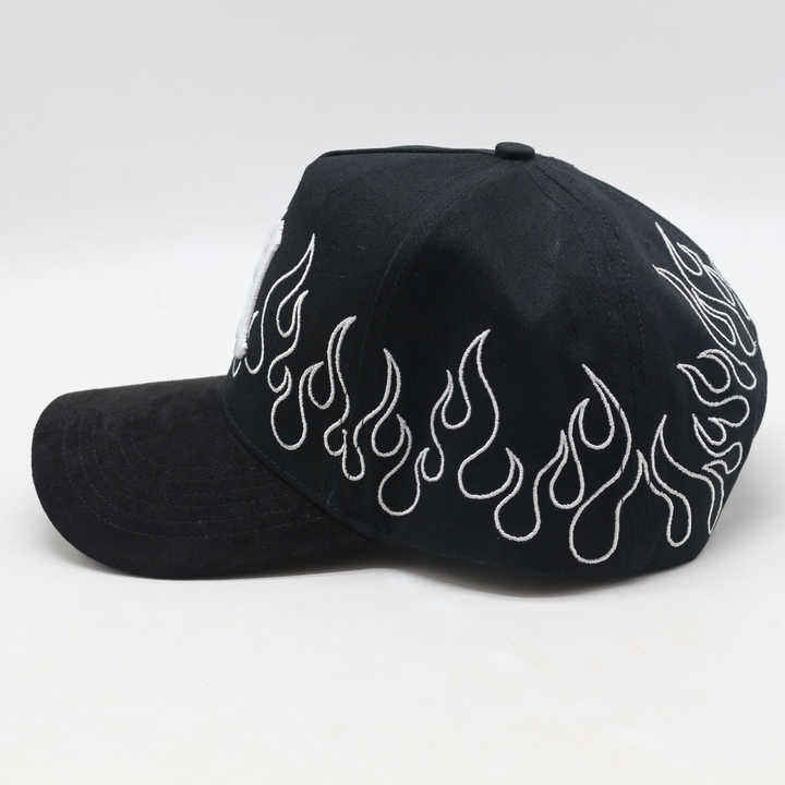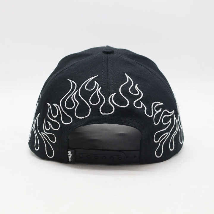 หมวกเบสบอลสไตล์แฟชั่นซับในผ้าซาตินปักลายด้วยเปลวไฟออกแบบได้ตามต้องการ