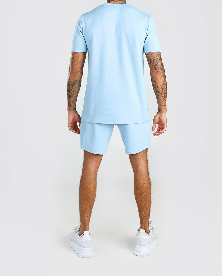 เสื้อยืดและกางเกงขาสั้นแบบหนา 2 ชิ้น ชุดเซ็ตสำหรับผู้ชาย พิมพ์โลโก้ตามสั่ง ชุดฤดูร้อน 2 ชิ้นสำหรับผู้ชาย