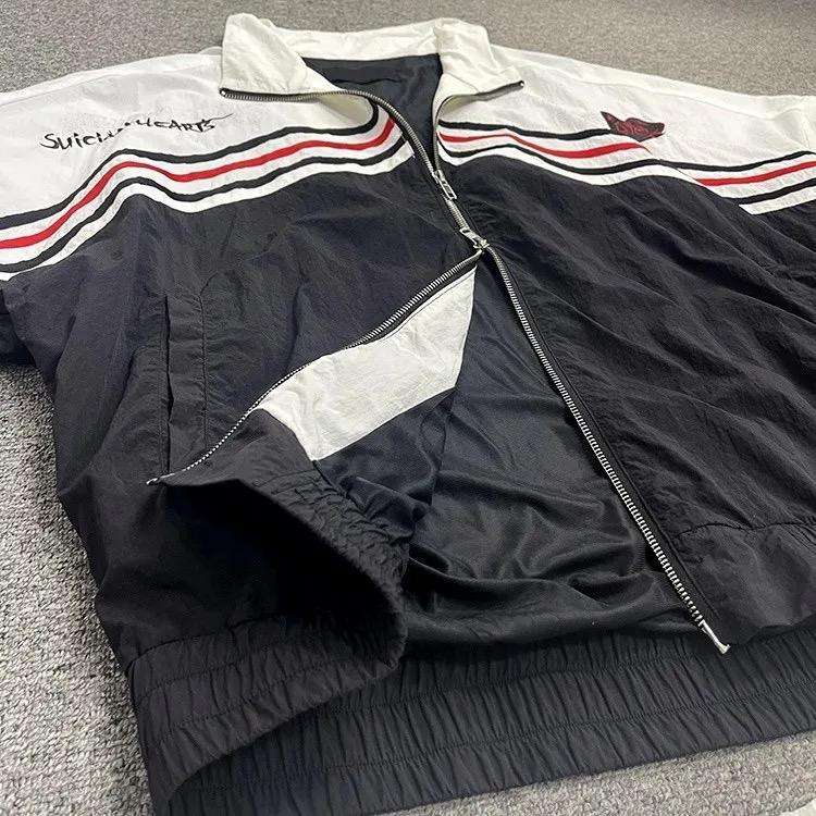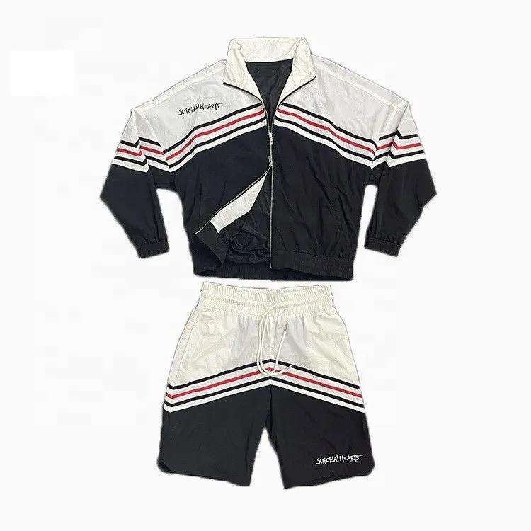 ชุดเสื้อแจ็คเก็ตกันลมแบบสั้นสำหรับผู้ชายชุดวอร์มผ้าไนลอนโพลีเอสเตอร์แบบเย็บติด