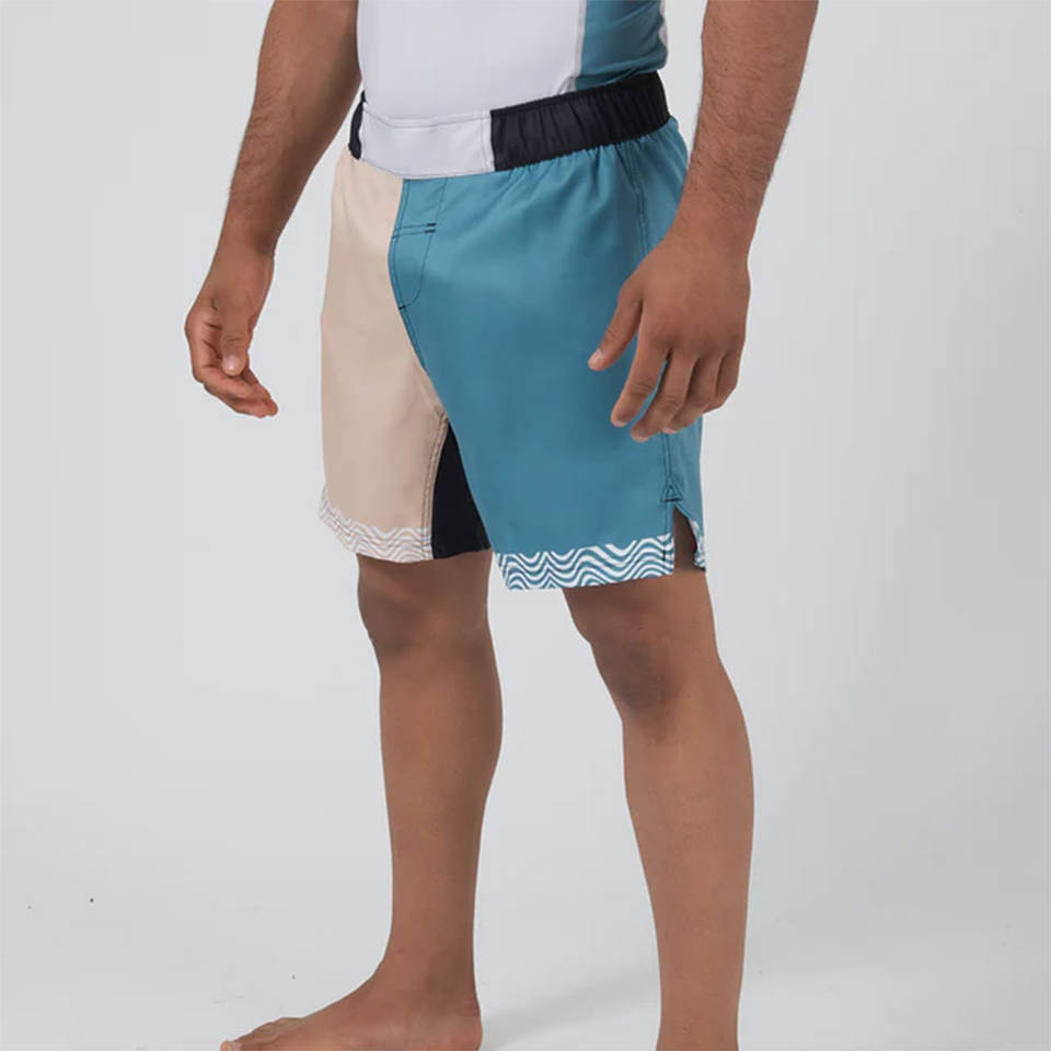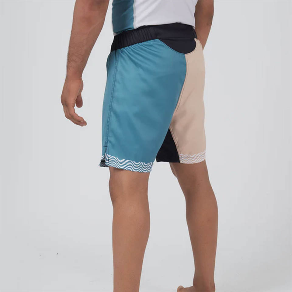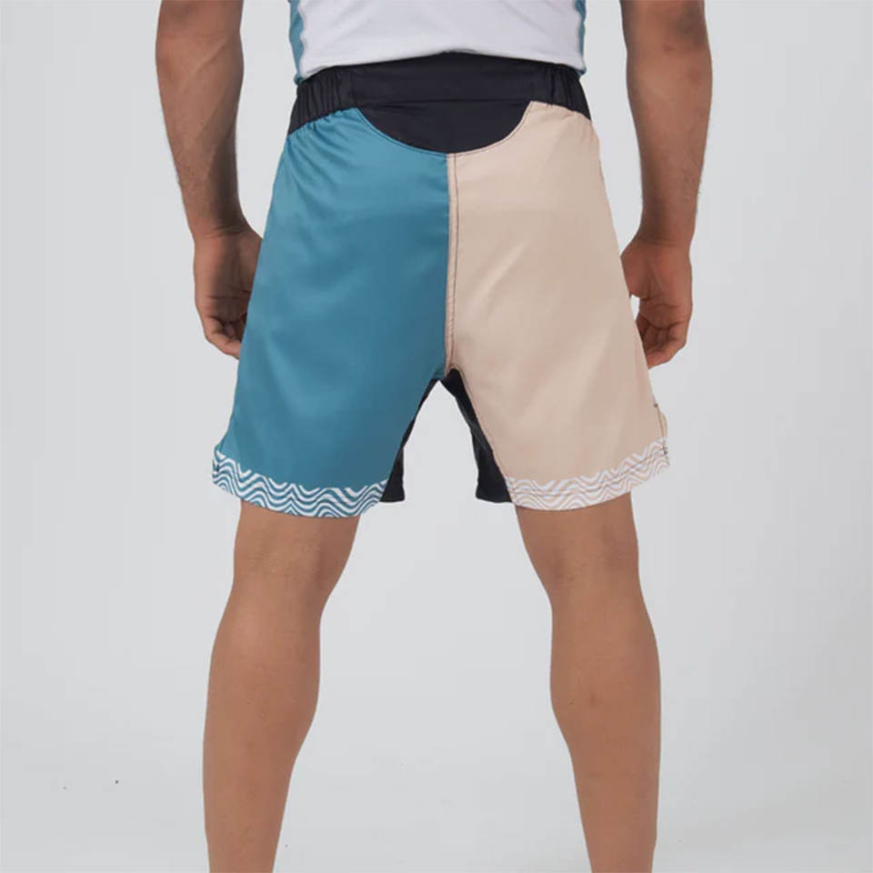 กางเกงขาสั้น BJJ สองโทนสีแบบกำหนดเองกางเกงขาสั้นสำหรับต่อสู้เพื่อการฝึกยืดได้4ทางแบบแห้งเร็วดีไซน์บล็อกสี