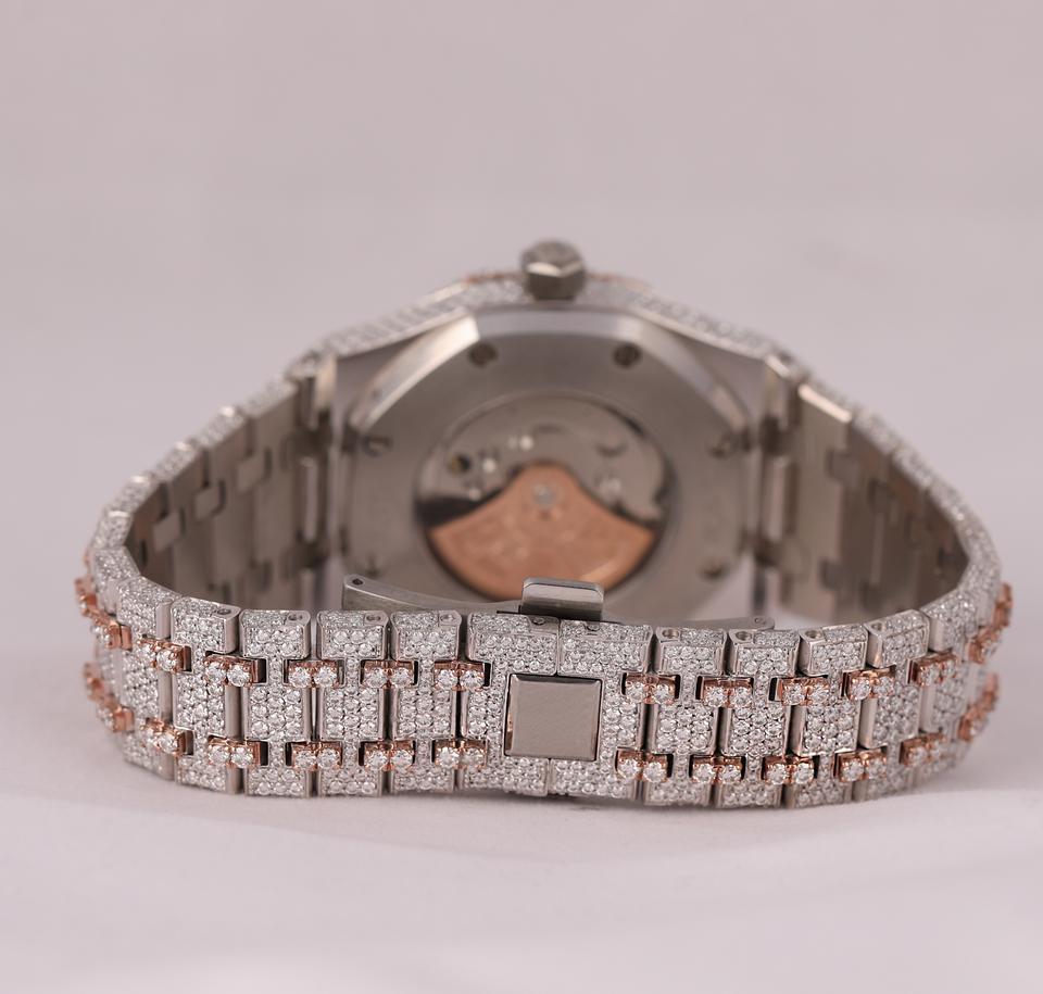 นาฬิกาเพชรสำหรับผู้ชายสายสแตนเลสอาหรับความกว้างของสายสแตนเลสสำหรับห้องปฏิบัติการสองสีกุหลาบและสีขาว