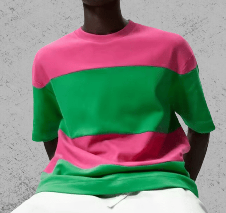 เสื้อยืดแขนสั้นผู้ชายลายทางทูโทนเสื้อยืดลำลองทรงหลวมผ้าฝ้าย100% สบายกำหนดเอง