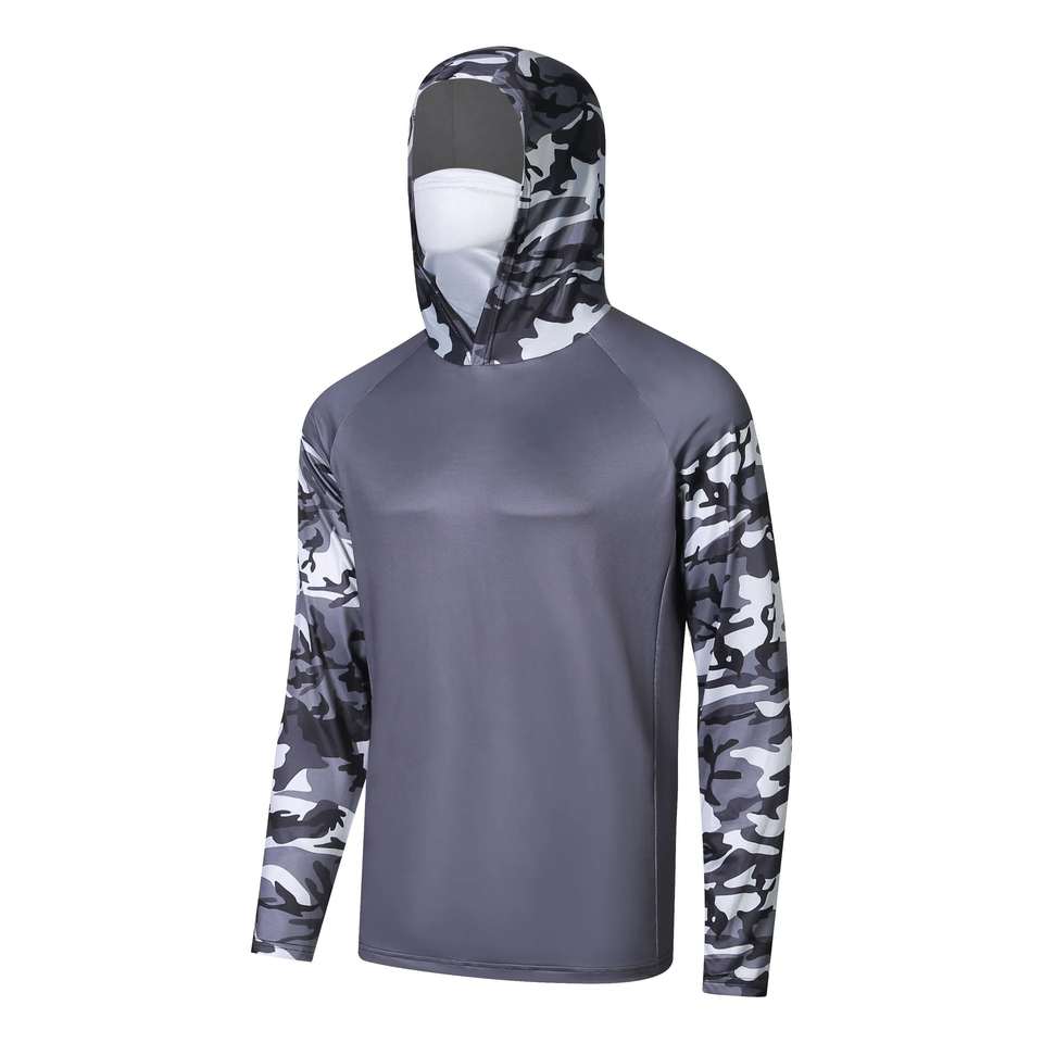 เสื้อตกปลาแบบมีฮู้ด แขนยาว UPF 50 สำหรับทุกเพศ ป้องกันรังสียูวี แห้งเร็ว ระบายอากาศได้ดี ผลิตจากโพลีเอสเตอร์ 100% แบบซับลิเมชั่น