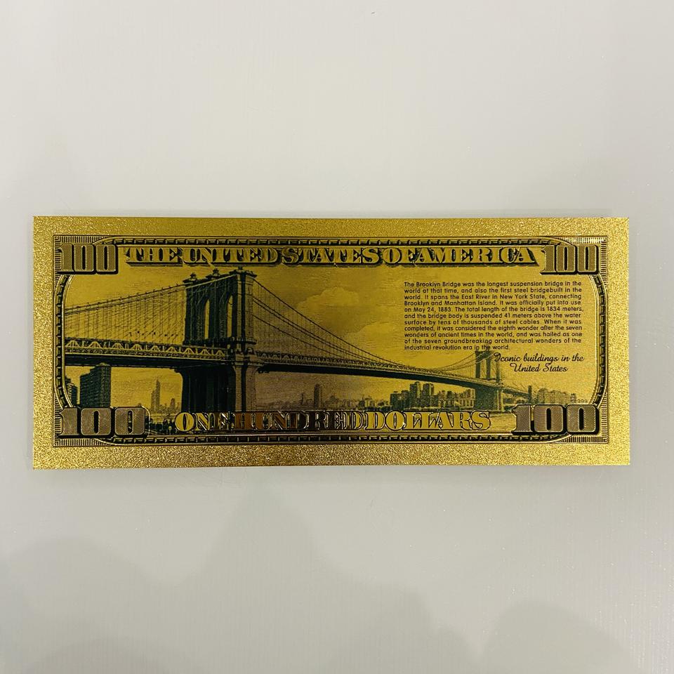 ธนบัตรสะสมแบบกำหนดเอง 100 ดอลลาร์สหรัฐ ทำจากโพลิเมอร์ ชุบทอง สำหรับใช้เป็นของตกแต่ง