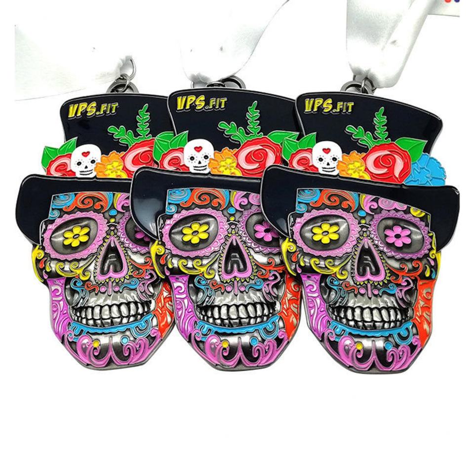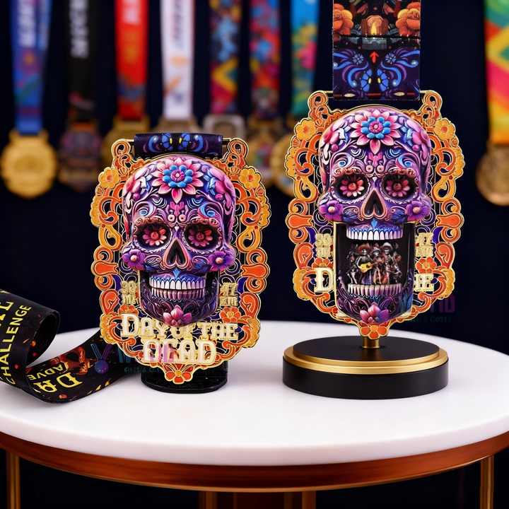 เหรียญกีฬาแบบดั้งเดิมทำจากโลหะผสมสังกะสีพิมพ์ลาย UV ตามสั่ง เหรียญสำหรับนักวิ่งมาราธอนและวิ่งเทรล ดีไซน์ลายดอกไม้สีสันสดใส