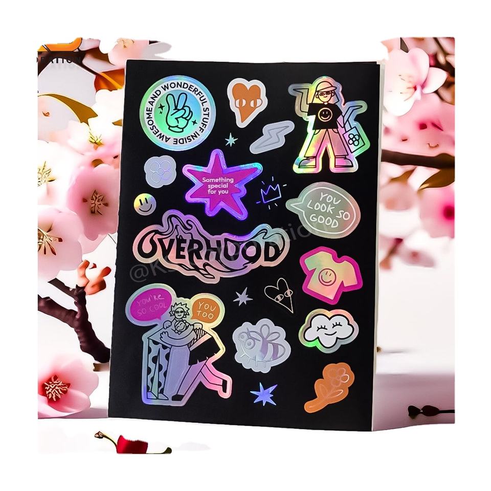 สติกเกอร์แผ่นไวนิลโฮโลแกรมกันน้ำสำหรับตกแต่งพื้นผิวแผ่นไวนิลพิมพ์ลายพิมพ์ออฟเซตทำจากผ้าไหม UV