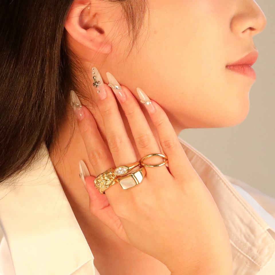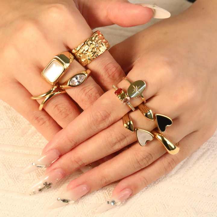 แหวนปรับขนาดได้ประดับเพทายหลากสีสัน ดีไซน์เฉพาะตัว วัสดุสแตนเลสชุบทอง 18K รูปทรงสี่เหลี่ยมและหัวใจ สำหรับผู้หญิง