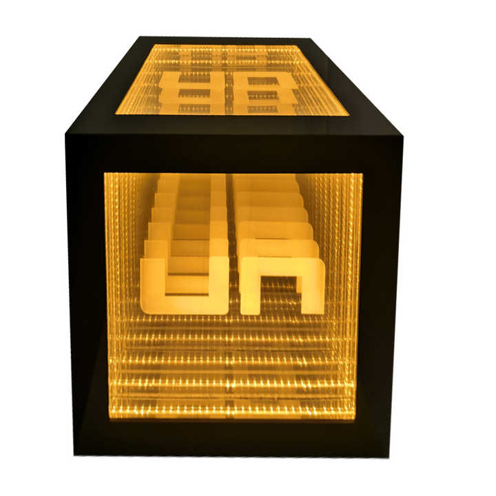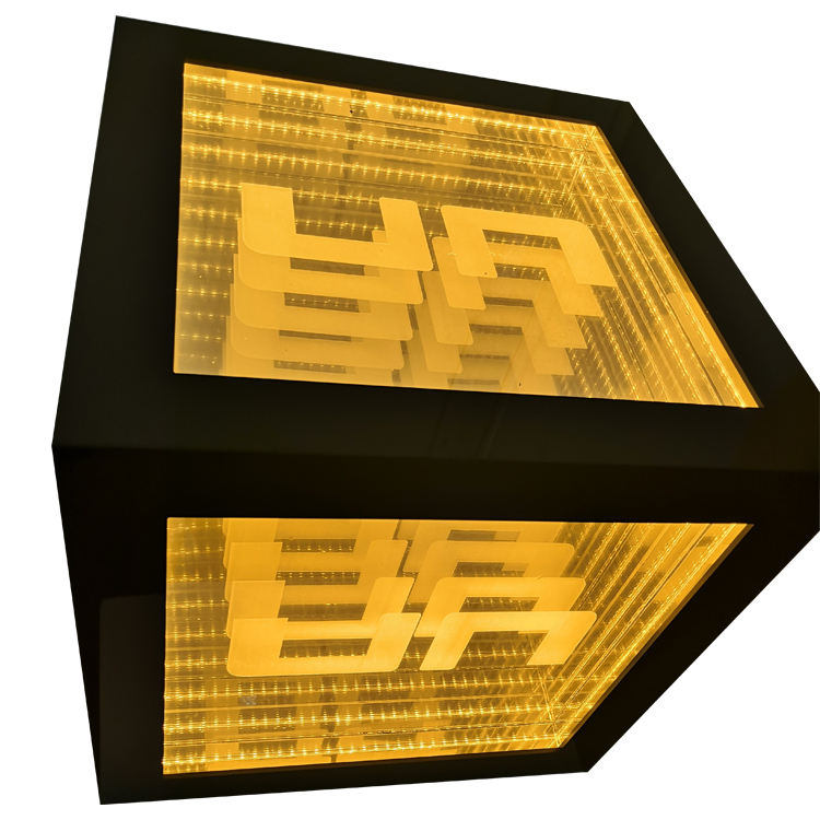 คิวบ์อะคริลิคไฟแอลอีดีสีทองมีเอกลักษณ์เฉพาะงานตามสั่งกล่องลูกบาศก์สี่เหลี่ยมกล่องโชว์หน้าต่างร้านของตกแต่งบ้าน