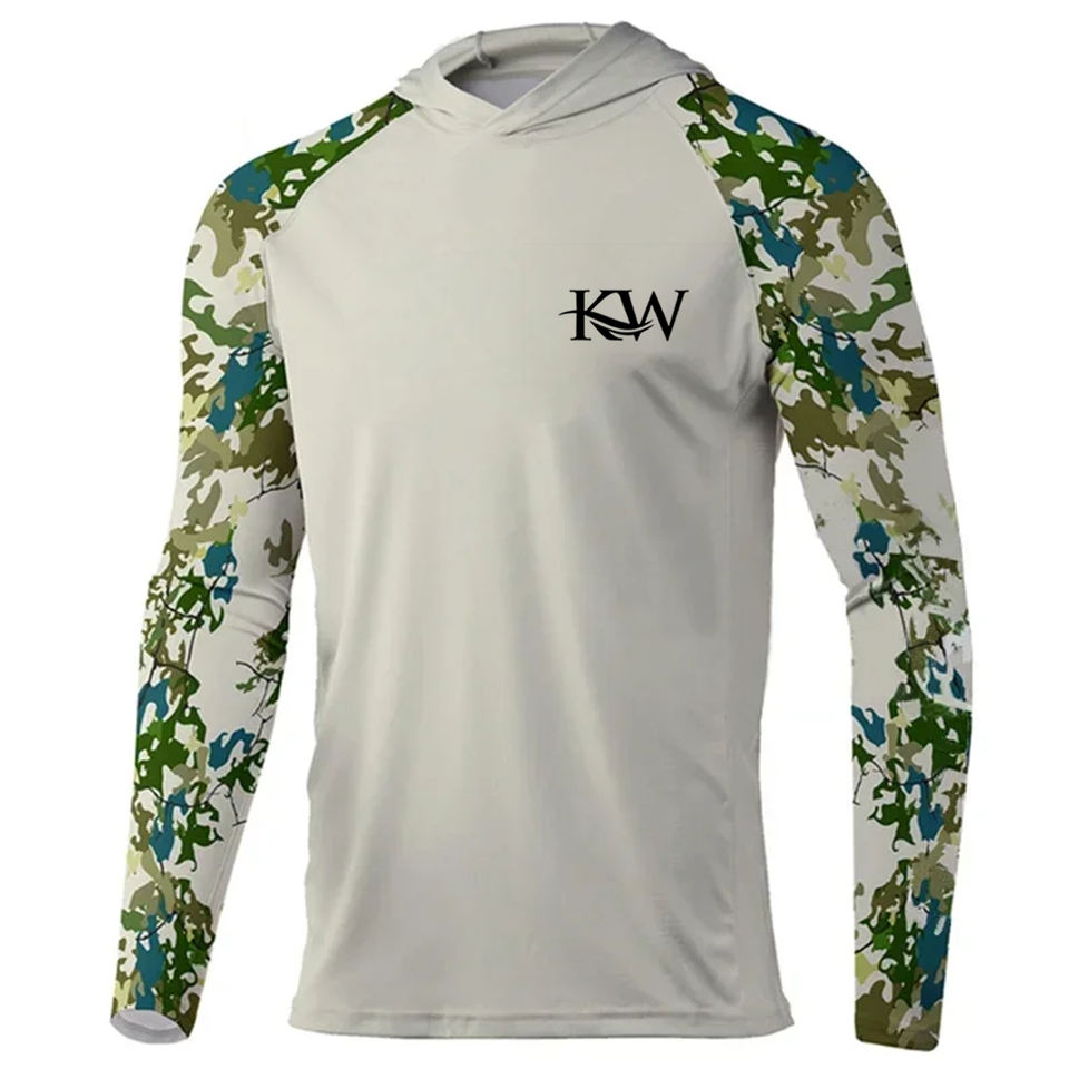 เสื้อตกปลาแบบมีฮู้ด แขนยาว แห้งเร็ว ระบายอากาศได้ดี ป้องกันแบคทีเรีย UPF 50 ผลิตจากโพลีเอสเตอร์ 100% สำหรับทุกเพศ