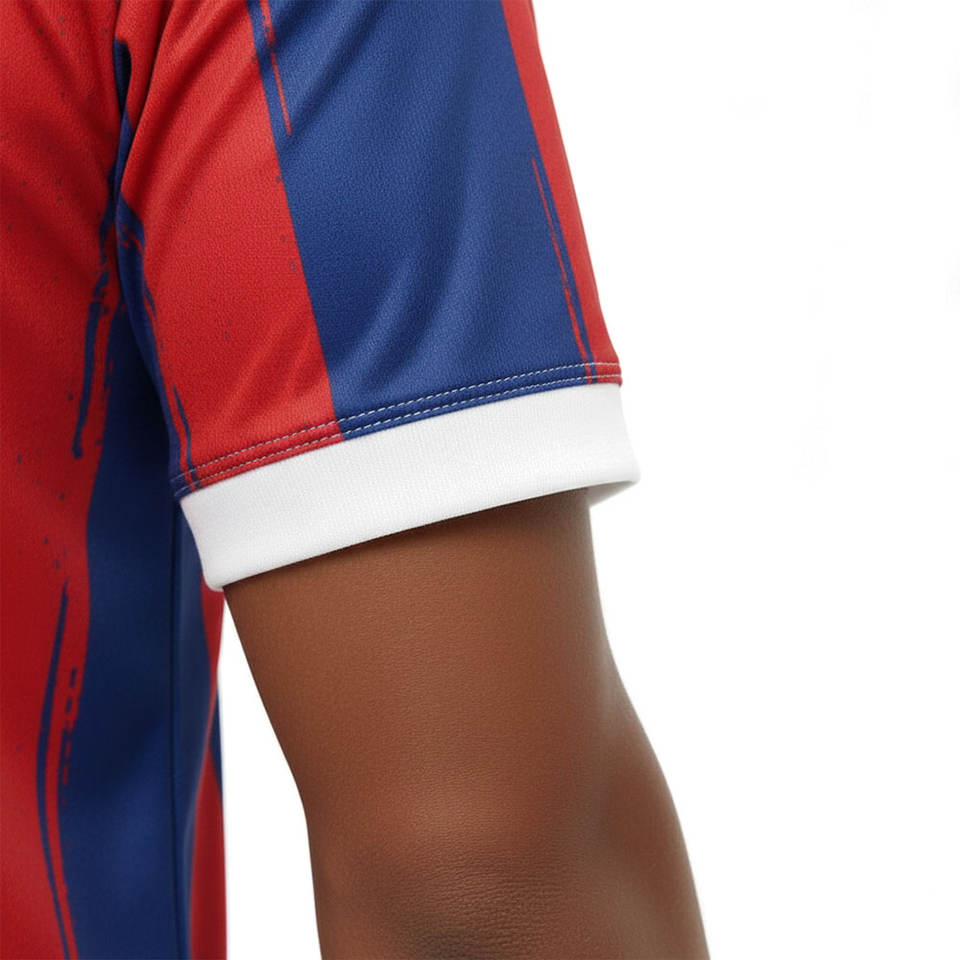 ตำแหน่งโลโก้:ด้านหน้า, ด้านหลัง, แขนเสื้อด้านซ้าย, แขนเสื้อด้านขวา, ขอบล่าง, หลังคอ