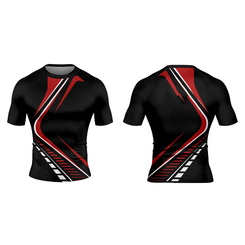 BJJ ชุดฝึกผื่นคันและกางเกงขาสั้น2ชิ้นสำหรับฝึกศิลปะการต่อสู้แบบผสมผสาน MMA ระบายอากาศได้ดีแห้งเร็วออกแบบได้ตามต้องการ