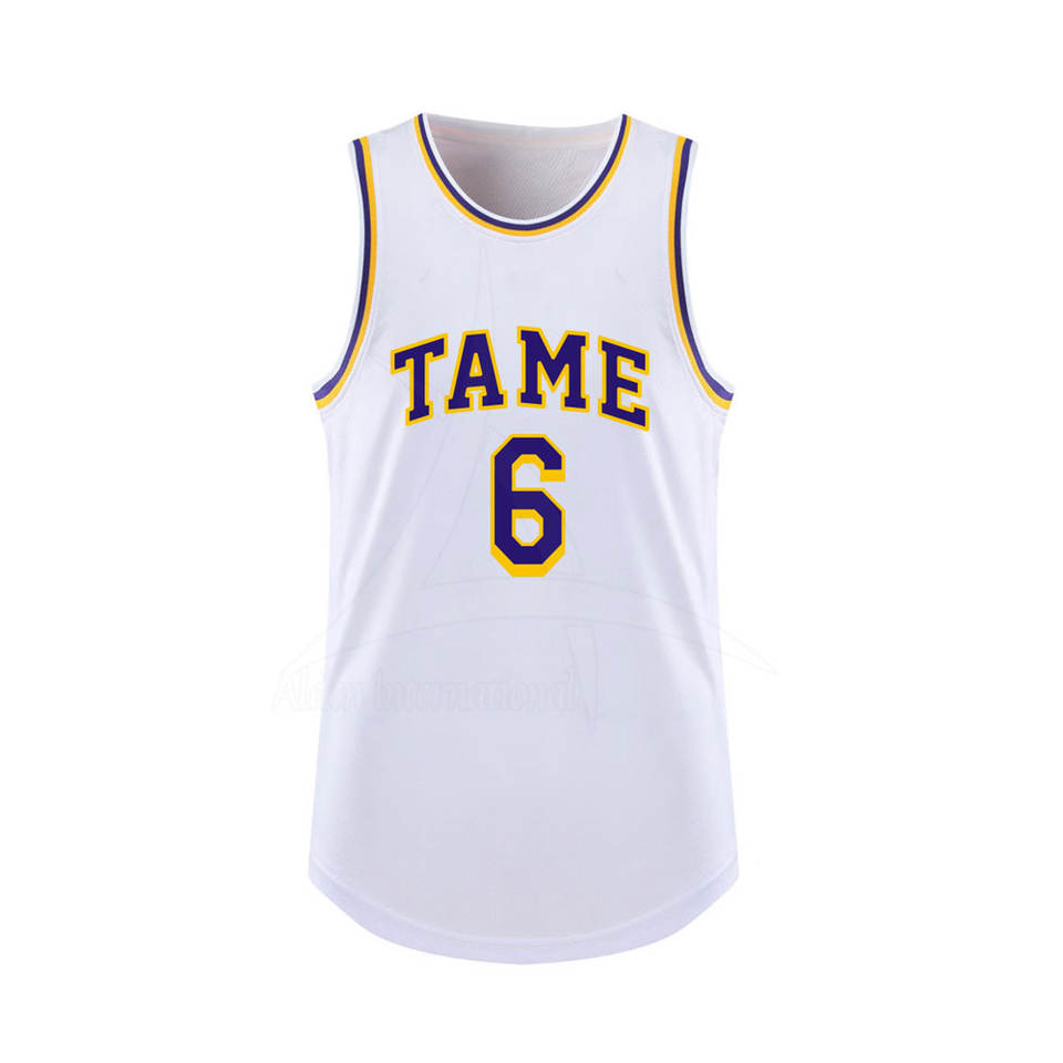 เสื้อบาสเก็ตบอลแบบกำหนดเองได้ ระบายอากาศได้ดี พิมพ์ลายสีม่วง/ขาว ผ้าฝ้าย/โพลีเอสเตอร์ โลโก้แบบกำหนดเอง คุณภาพสูง