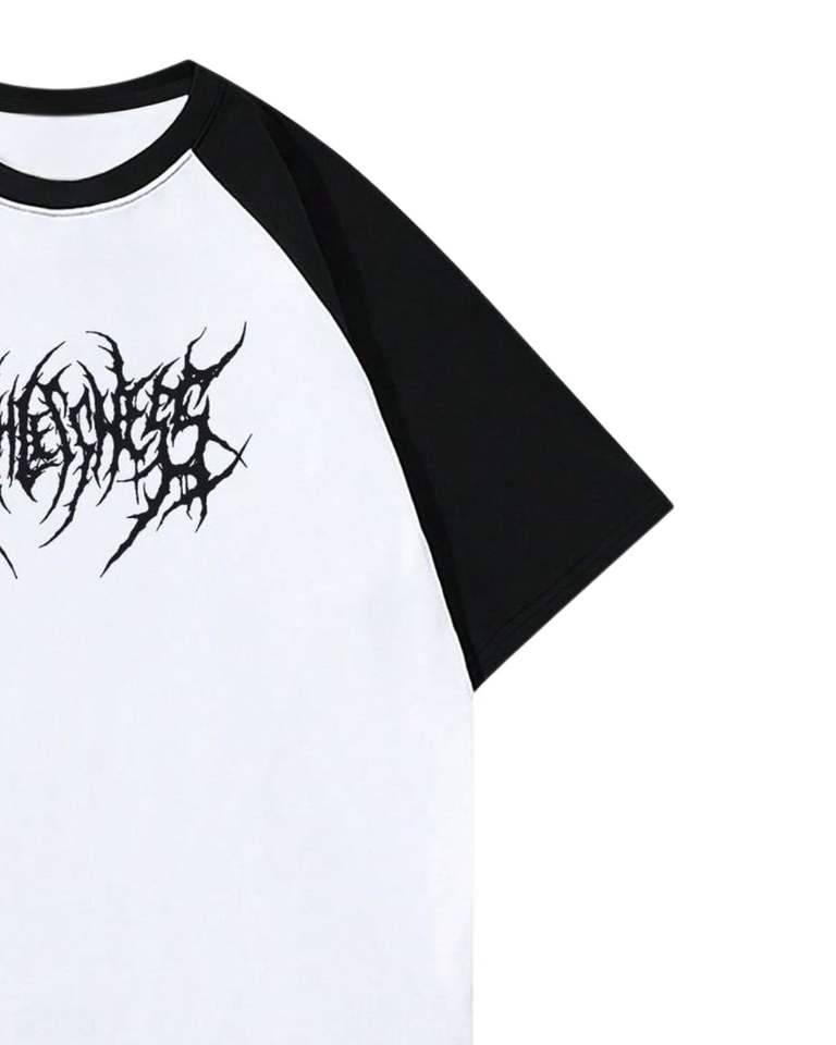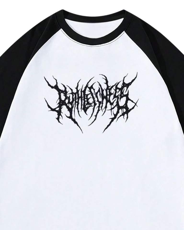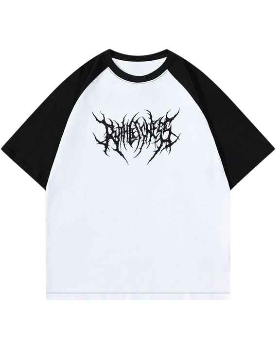 เสื้อยืดแร็กแลนสีดำขาวลายกราฟิกสไตล์โกธิค พิมพ์โลโก้ แขนสั้น ผ้าฝ้าย ใส่สบาย สตรีทแวร์ ทรงโอเวอร์ไซส์ เสื้อฤดูร้อน