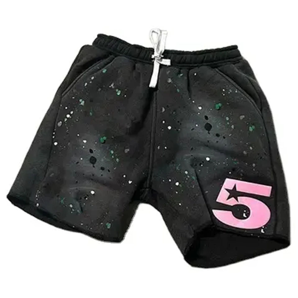 กางเกงขาสั้นยูนิเซ็กซ์ผ้าฝ้ายผสมเนื้อนุ่ม ความยาวขา 5 นิ้ว ผ้าฝ้าย 100% ยูนิเซ็กซ์ ล้างสีแบบแอซิดวอช พิมพ์ลายหลากสีทั่วตัว