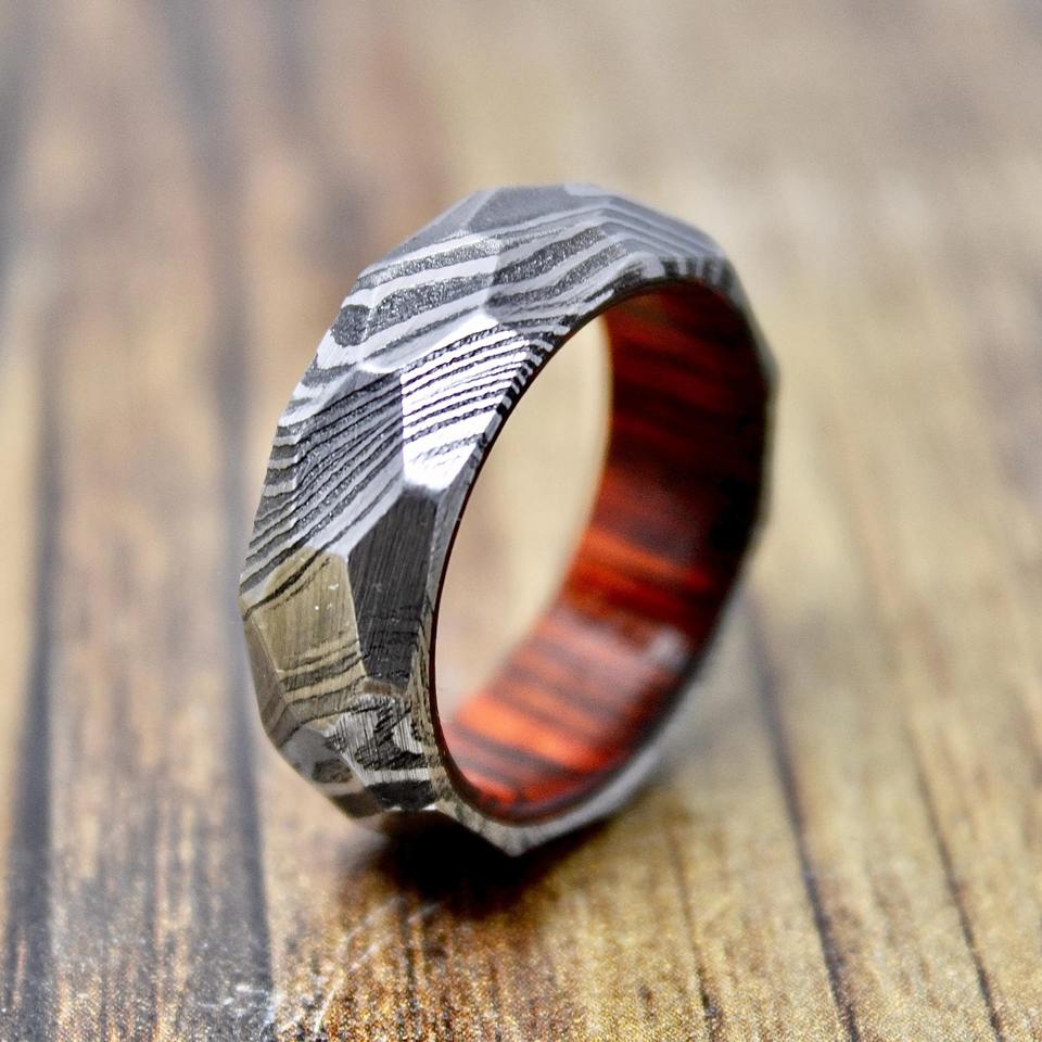 แหวนแต่งงานเหล็กดามัสกัสสำหรับผู้ชายทุกเพศทำด้วยมือมีดเกรด OEM สนับสนุนเครื่องมือแหล่งพลังงานด้วยตนเองสำหรับผู้ชาย