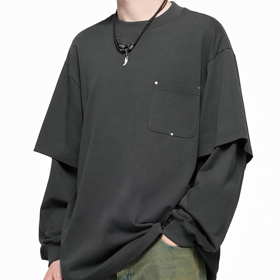 เสื้อยืดแขนยาวสองชั้นแบบยูนิเซ็กซ์ ทรงปกติ คอโอ ป้องกันลม ผ้าฝ้าย 100% สำหรับฤดูใบไม้ร่วง ดีไซน์ ODM แบบมีซับใน