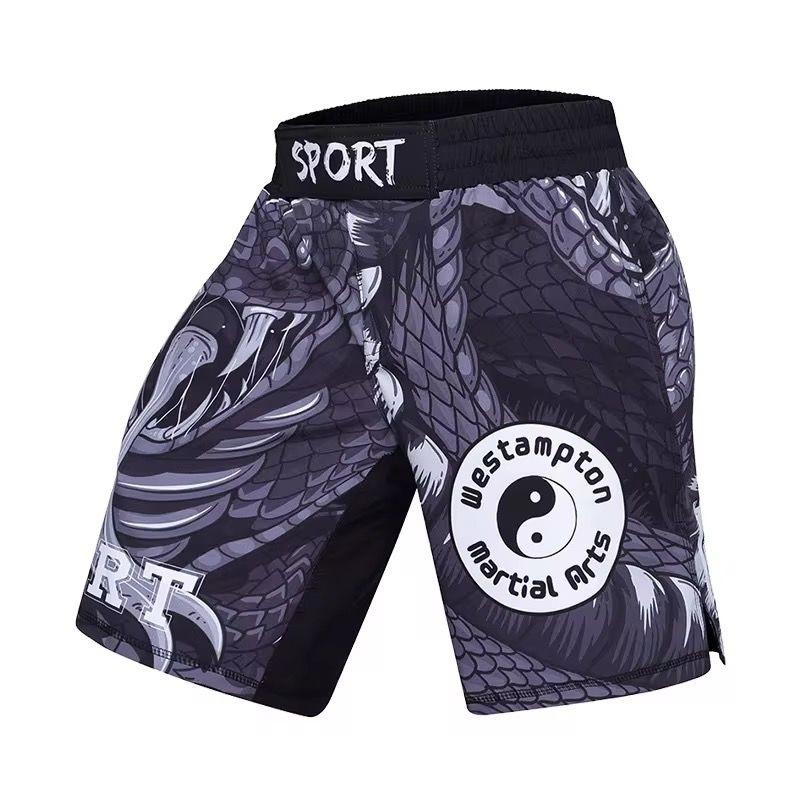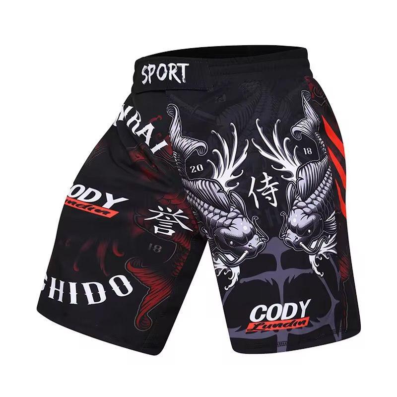 Custom Unisex Heat-Transfer Boxing Grappling Jiu Jitsu BJJ Fight MMA Shorts Elastic Waist Band Slits Stretch Breathable