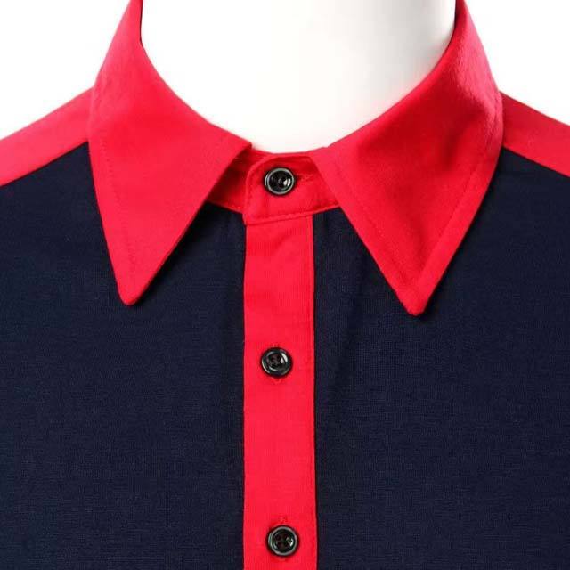 เสื้อเชิ้ตแขนสั้นผ้าฝ้าย 100% แบบเรียบง่าย สไตล์ธุรกิจ แห้งเร็ว สำหรับผู้ชายและผู้หญิง สีดำ คอสีแดง ขายส่ง
