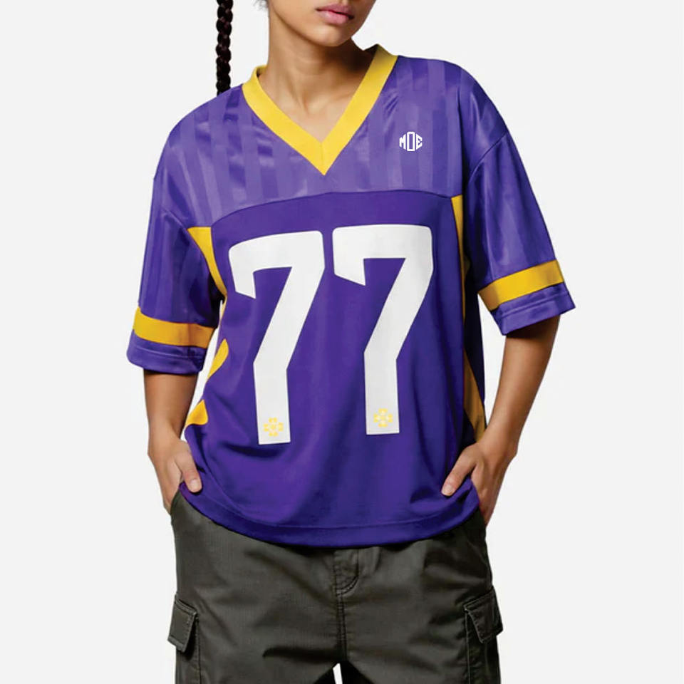 ชุดเสื้อฟุตบอลอเมริกันตาข่ายสีม่วงแบบยูนิเซ็กซ์สั่งทำพิเศษ ระบายอากาศได้ดี ผลิตจากโพลีเอสเตอร์ ชุดยูนิฟอร์มทีม รับผลิตแบบ OEM แบรนด์ส่วนตัว ผู้ผลิตจำนวนมาก สหรัฐอเมริกา