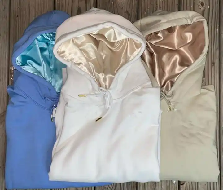 เสื้อมีฮู้ดบุผ้าซาตินใส่ได้ทั้งชายและหญิงเสื้อฮู้ดแบบสวมศีรษะโอเวอร์ไซส์กำหนดเอง