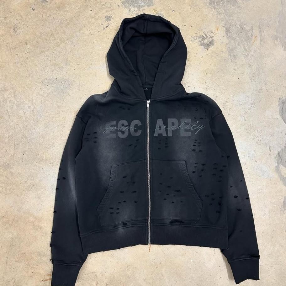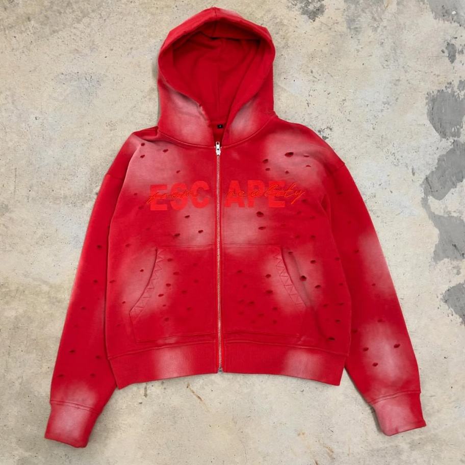 เสื้อฮู้ดดี้ซิปเต็มตัวทรงโอเวอร์ไซส์สไตล์วินเทจพิมพ์ลายสกรีนผ้าไหมแบบยูนิเซ็กซ์ พร้อมดีไซน์ฟอกสีซีดแบบทำเก่าสำหรับผู้ชาย