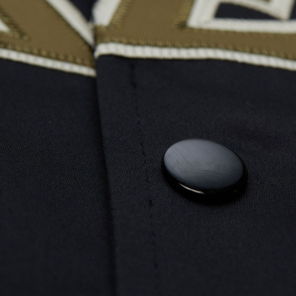แจ็กเก็ตบอมเบอร์ผ้าซาตินย้อมสีทึบใส่ได้ทั้งชายและหญิงมีปกตั้งกระดุมปักโลโก้ทีม