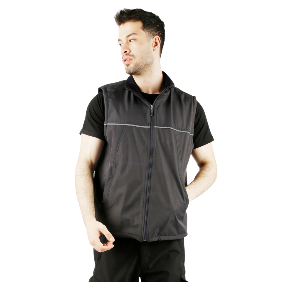 เสื้อกั๊กทำงานแบบยูนิเซ็กซ์ ซิปปิด กันน้ำ กันลม บุขนแกะให้อุ่นสูง มี 3 กระเป๋า สไตล์ลำลอง ไม่มีแขน น้ำหนัก 220 กรัม พิมพ์ลายด้วยเทคนิคซิลค์สกรีน