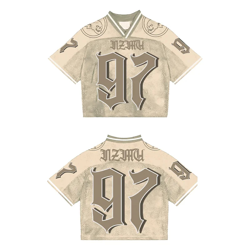 เสื้อยืดฟุตบอลคอกว้างทรงโอเวอร์ไซส์ แห้งเร็ว ผ้าตาข่าย แบบวินเทจ สตรีทแวร์ โพลีเอสเตอร์ เสื้อเจอร์ซีย์อเมริกันฟุตบอล