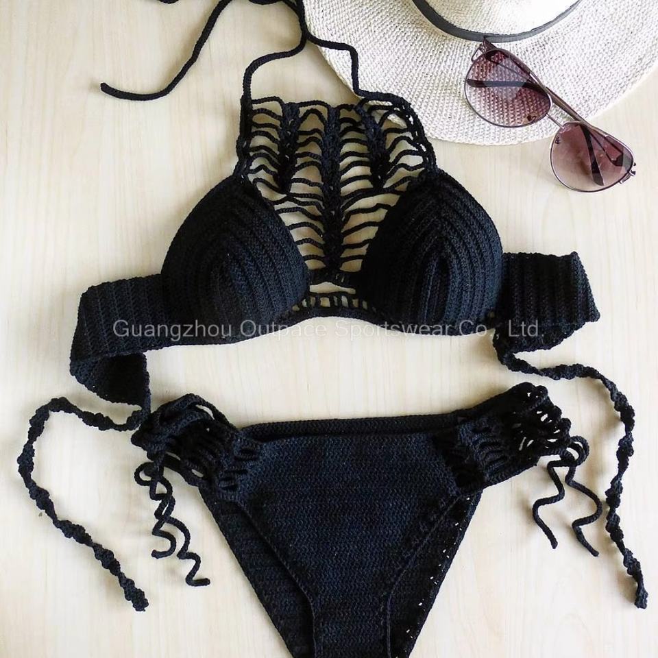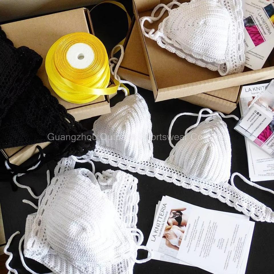 ชุดว่ายน้ำเซ็กซี่คอวีแบบสั่งทำ ชุดบิกินี่โครเชต์แฮนด์เมด ชุดว่ายน้ำผู้หญิงแบบ 2 ชิ้น ชุดชายหาด บิกินี่มินิแบบผูกเชือก