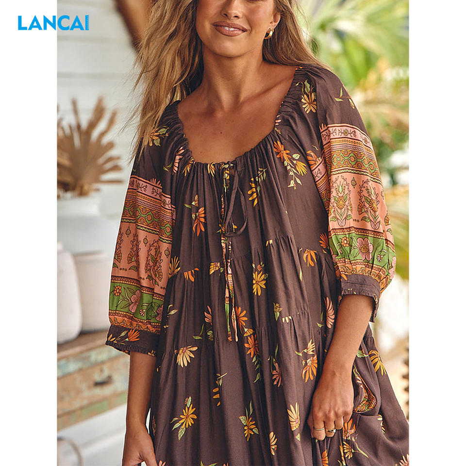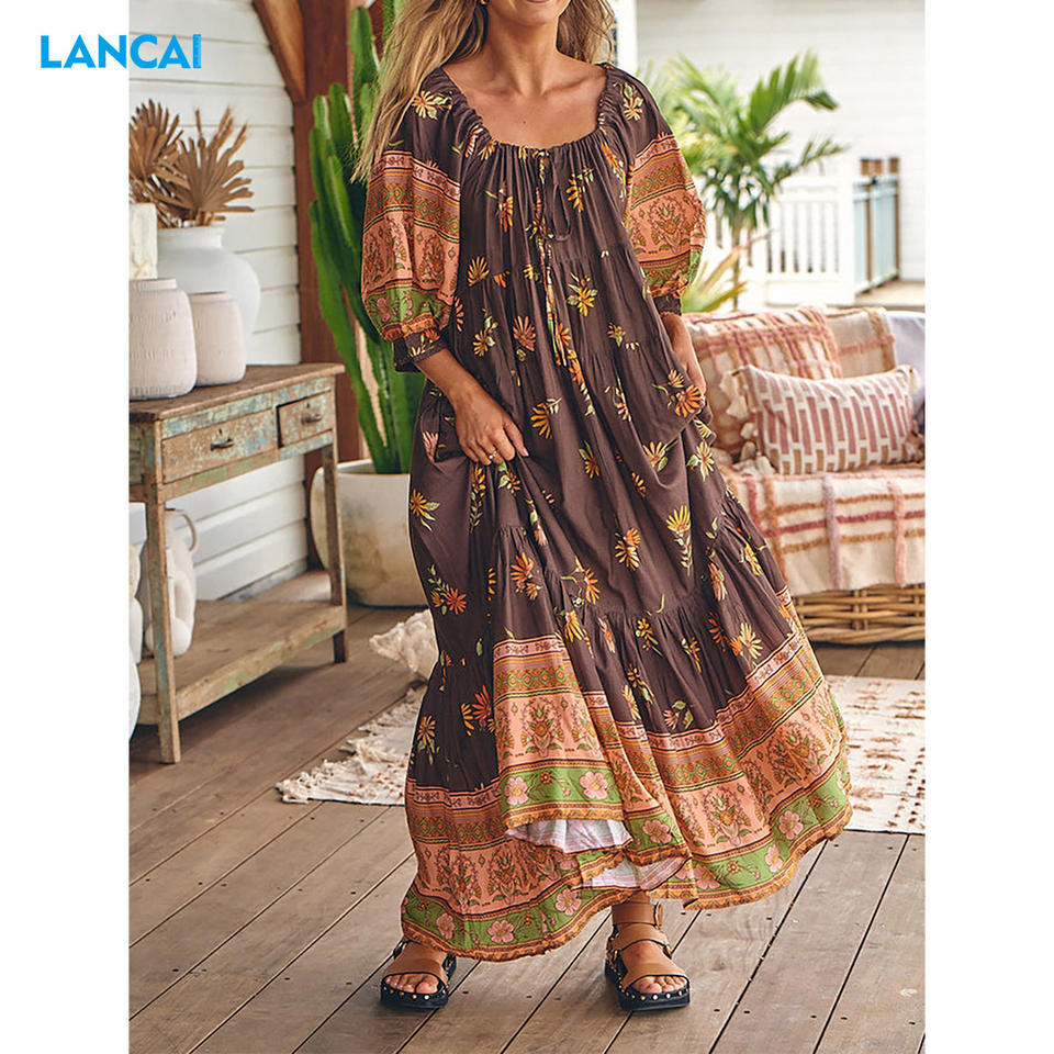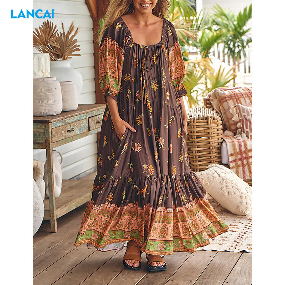 Product Name:V-neck Floral Print Side Slit 2020 Womens Maxi Sum