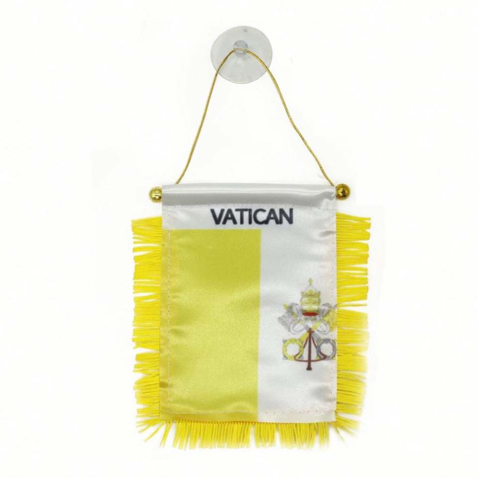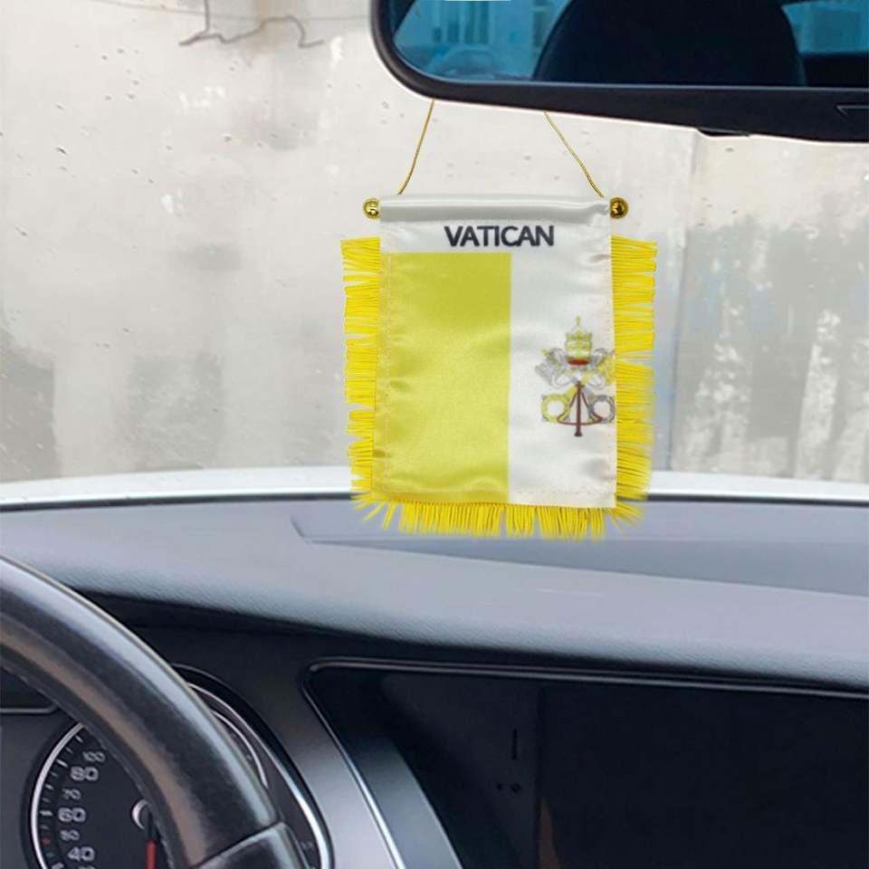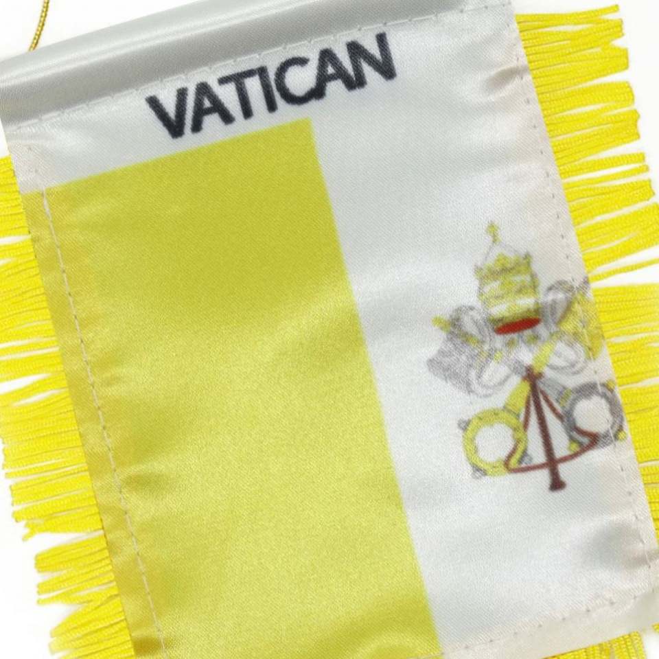 ธงซาตินวาติกันแบบกำหนดเอง ธงติดรถยนต์ขนาดเล็ก พร้อมพู่สีเหลือง