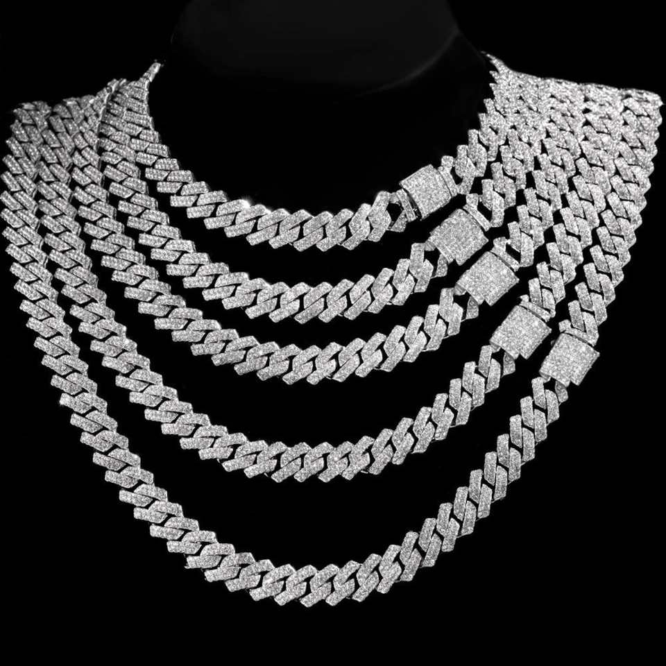 925เพชรใส VVS สเตอร์ลิงเงิน18K ชุบทองสีเหลือง18K สำหรับผู้ชายสร้อยคอดีมีห่วงโซ่เย็น