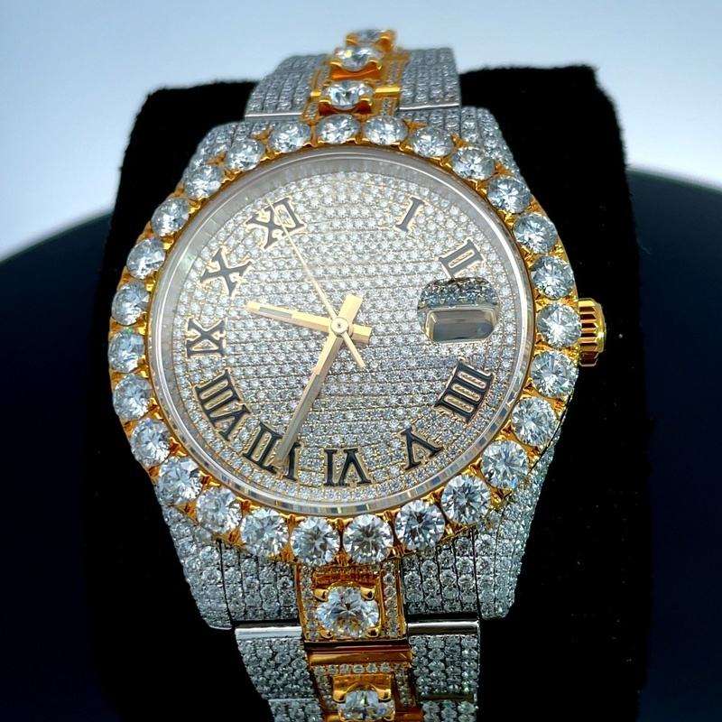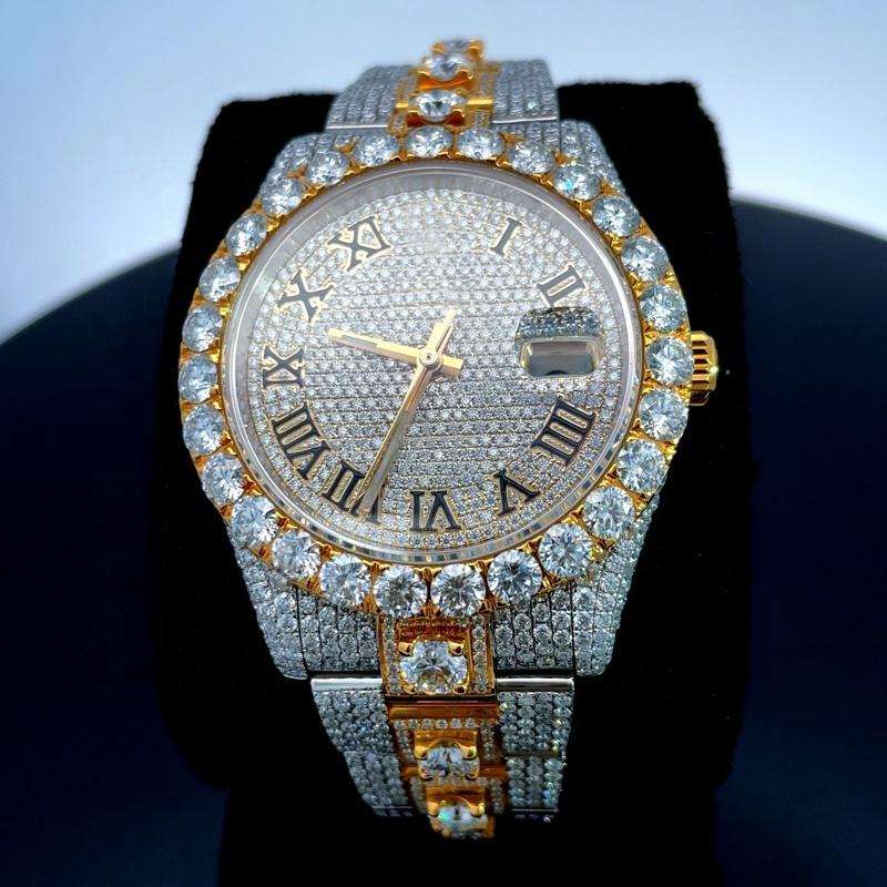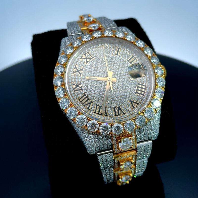 นาฬิกาโมอิสซาไนต์แบบกำหนดเอง VVS ประดับเพชรเต็มเรือน คุณภาพสูง ระดับท็อป ผลิตด้วยมือ ระบบกลไก