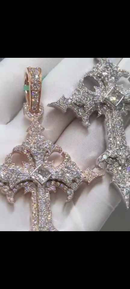 จี้เพชรโมอิสซาไนต์ VVS1 แบบสั่งทำพิเศษ สร้อยคอเงินแท้ 925 ชุบทองคำขาว ประดับเพชรเต็มชิ้นด้วยเทคนิค Pave Setting