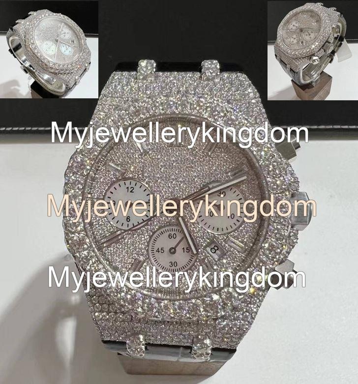 นาฬิกาโมอิสซาไนต์ VVS1 แบบสั่งทำพิเศษ, ตัวเรือนสแตนเลสสตีลประดับเพชรเต็มเรือน, ผ่านการทดสอบ, นาฬิกาเพชรหรูสำหรับผู้ชาย - นาฬิกาสำหรับเขา