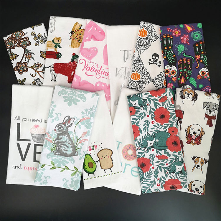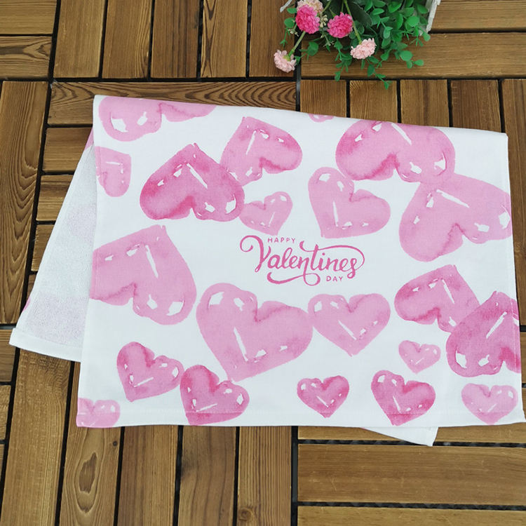 ผ้าเช็ดมือในห้องครัวพร้อมผ้าคอตตอนสำหรับชาสั่งทำลายวันวาเลนไทน์