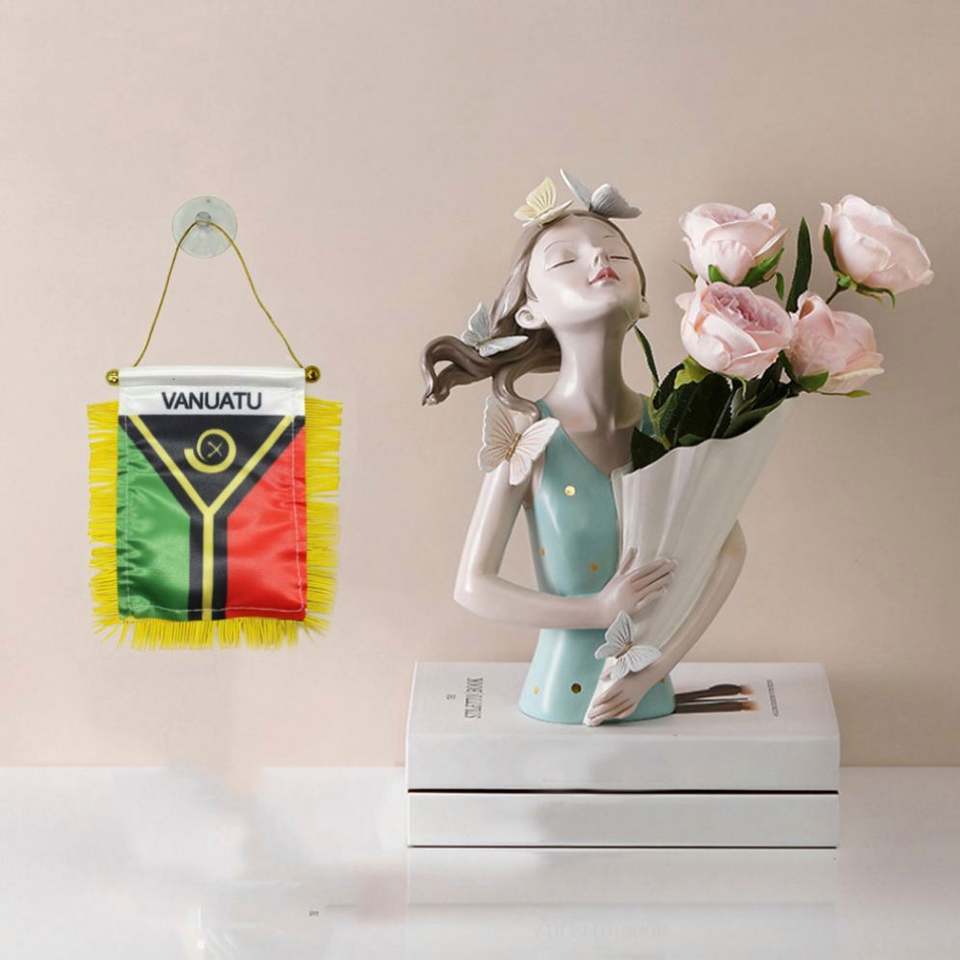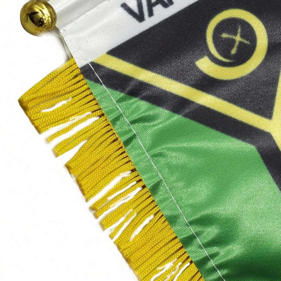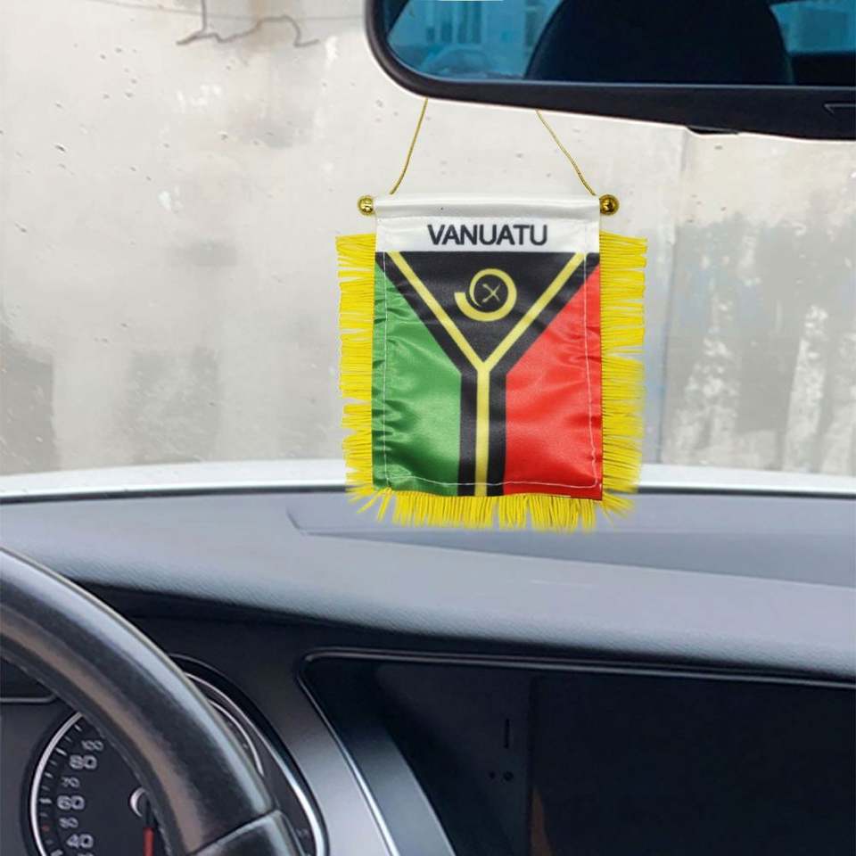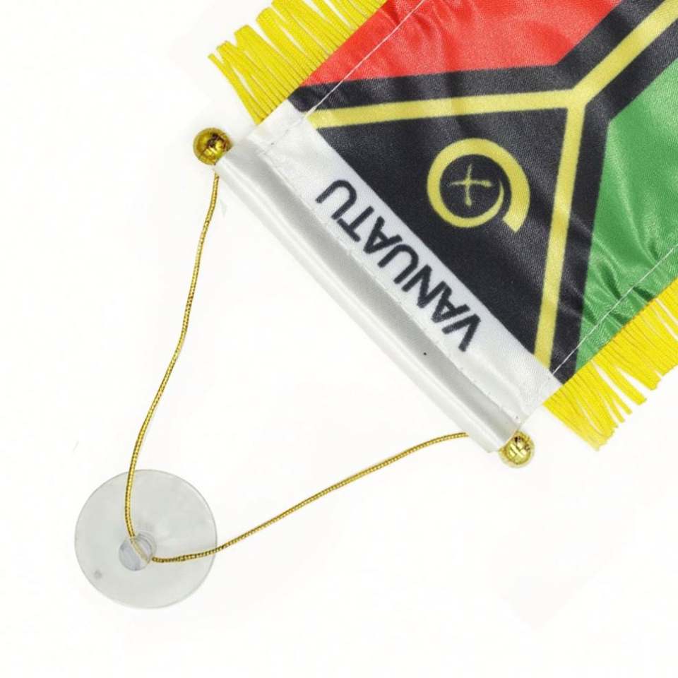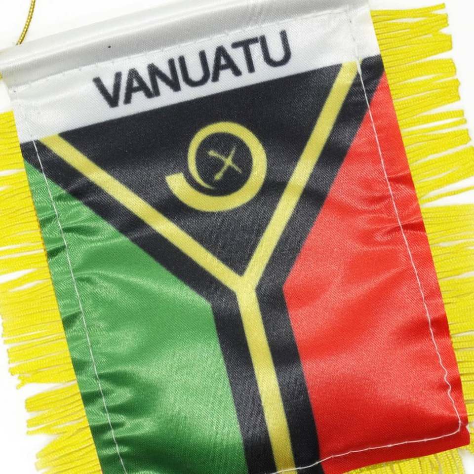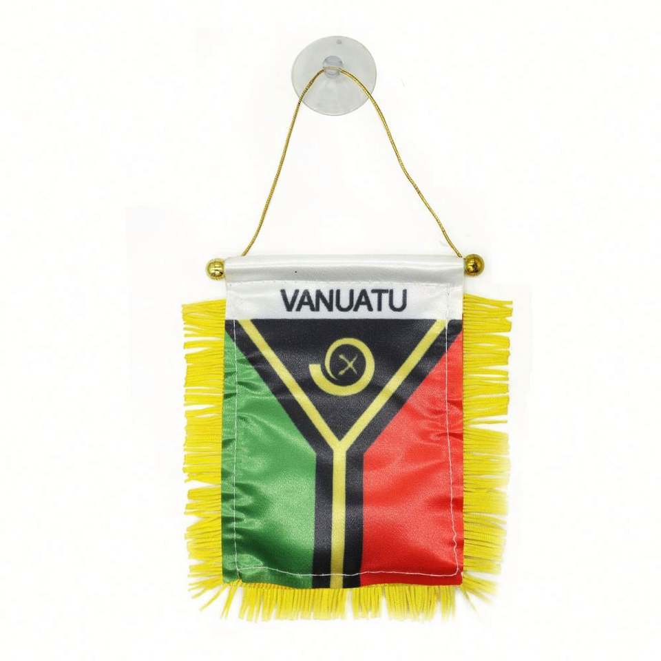 ธงซาตินขนาดเล็กแบบกำหนดเองของวาเนอตู พร้อมพู่สีเหลือง สำหรับการศึกษา ประกันภัย บริษัททัวร์ และการเกษตร