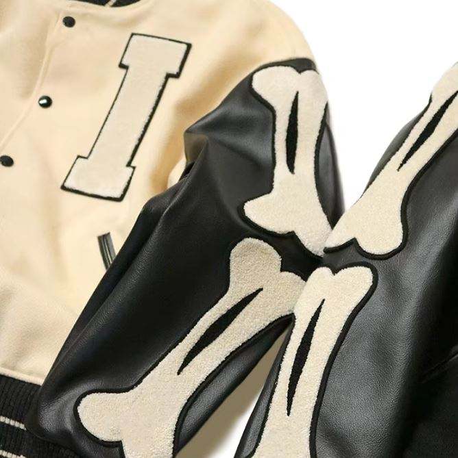 เสื้อแจ็คเก็ตวาร์ซิตี้บุขนสัตว์สำหรับผู้ชาย แขนหนังปักโลโก้ตามสั่ง กันลม ระบายอากาศได้ดี สไตล์ลำลอง