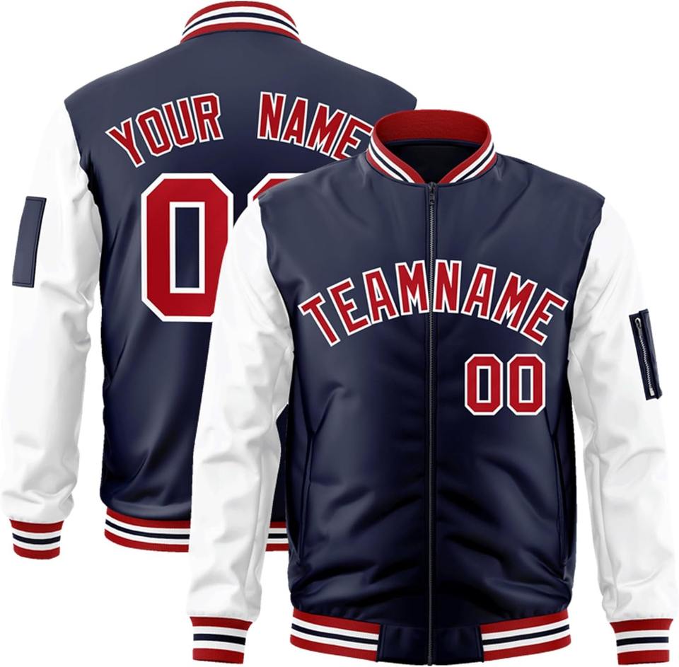 เสื้อแจ็กเก็ตทีมทีมที่มีสีตัดกันหมายเลขทีมตามสั่งปักหมายเลขบอมเบอร์เลตเทอร์แมนสำหรับวิทยาลัย
