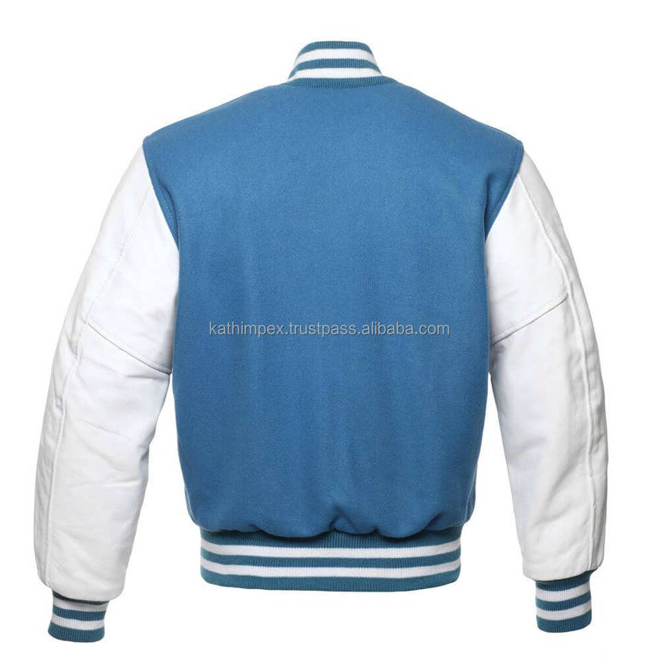 แจ็คเก็ตแขนเสื้อหนังสีขาวขนแกะสีฟ้าสำหรับฤดูใบไม้ผลิ