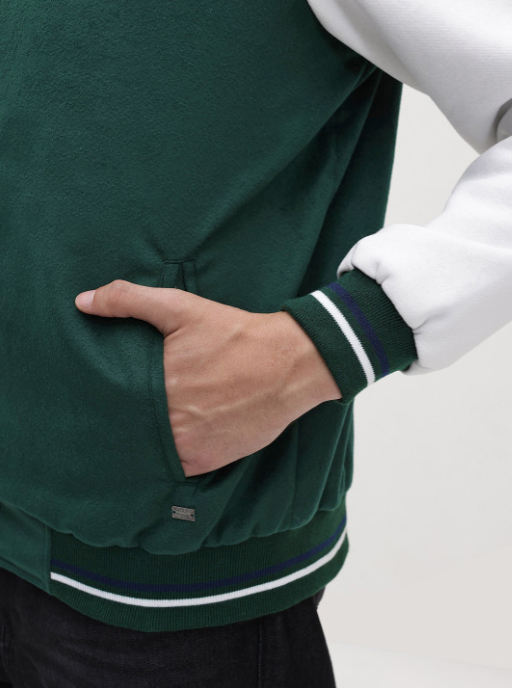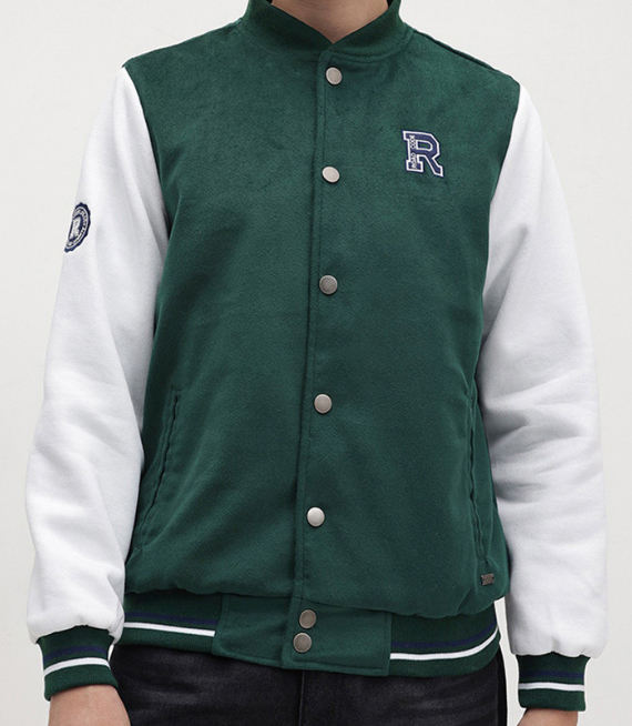 เสื้อแจ็คเก็ตวาร์ซิตี้แบบสั่งทำพิเศษ ผ้าขนสัตว์ คอตั้ง กันน้ำ สีเขียวเข้มและสีขาว