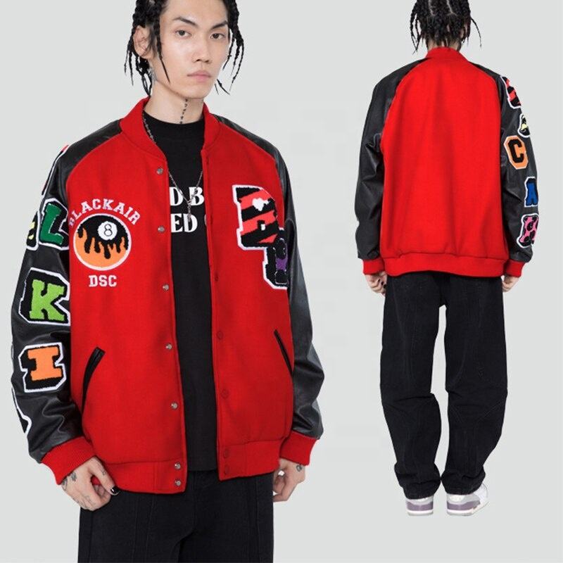 แจ็คเก็ตวาร์ซิตี้แบบกำหนดเอง แจ็คเก็ตเลตเตอร์แมน คอตั้ง เป็นมิตรกับสิ่งแวดล้อม กันลม ราคาโรงงานสำหรับผู้ชาย
