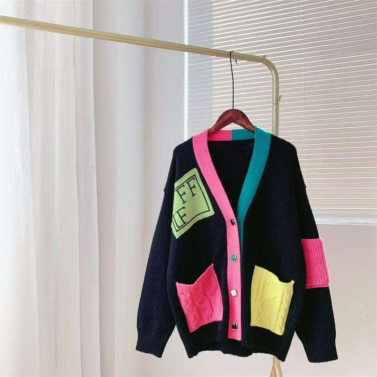 เสื้อสเวตเตอร์ถักแขนยาวของผู้หญิงเสื้อสเวตเตอร์ถักผ้าแจ็คการ์ดอเนกประสงค์และสีบล็อกแบบลำลอง