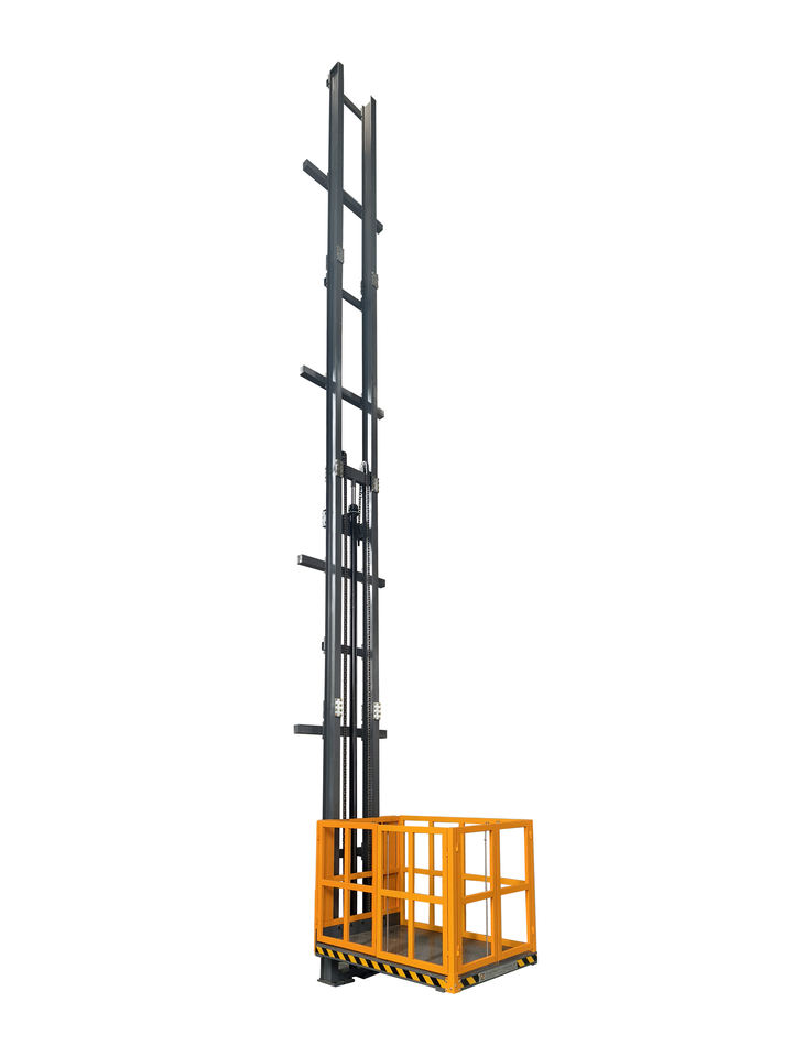 ลิฟต์ขนส่งสินค้าแบบรางแนวตั้งระบบไฮดรอลิกแบบกำหนดเอง ได้รับการรับรองมาตรฐาน CE สำหรับโรงงานและคลังสินค้า