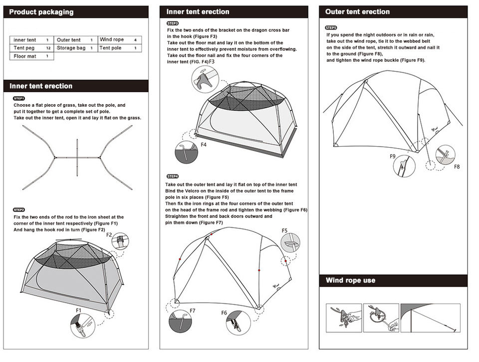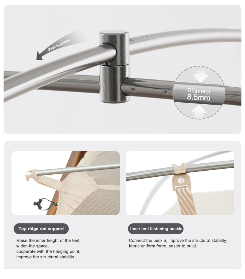 Outer tent material:15D Nylon PU2500mm/210T PU2500mm