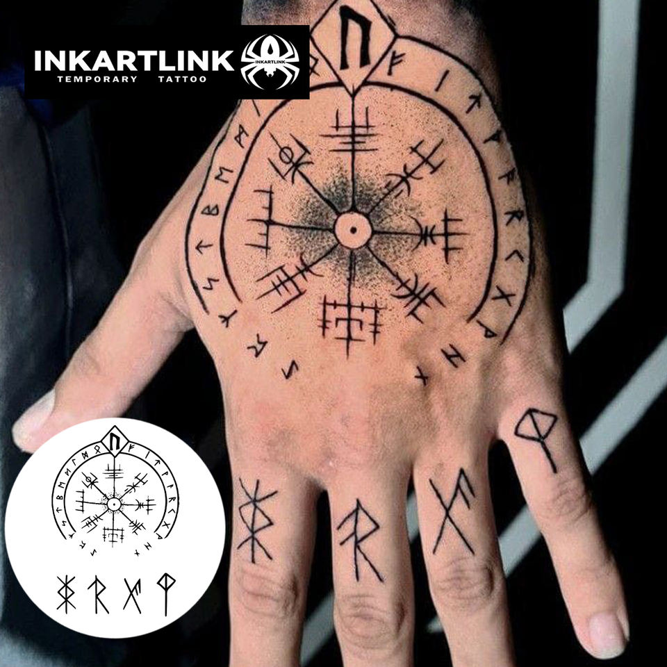 สติกเกอร์ลายสักสมุนไพรลายเข็มทิศไวกิ้งแบบกำหนดเอง กันน้ำ ติดทนนาน 15 วัน ลายกึ่งถาวรสำหรับตกแต่งร่างกาย สำหรับผู้ชาย ขายส่ง