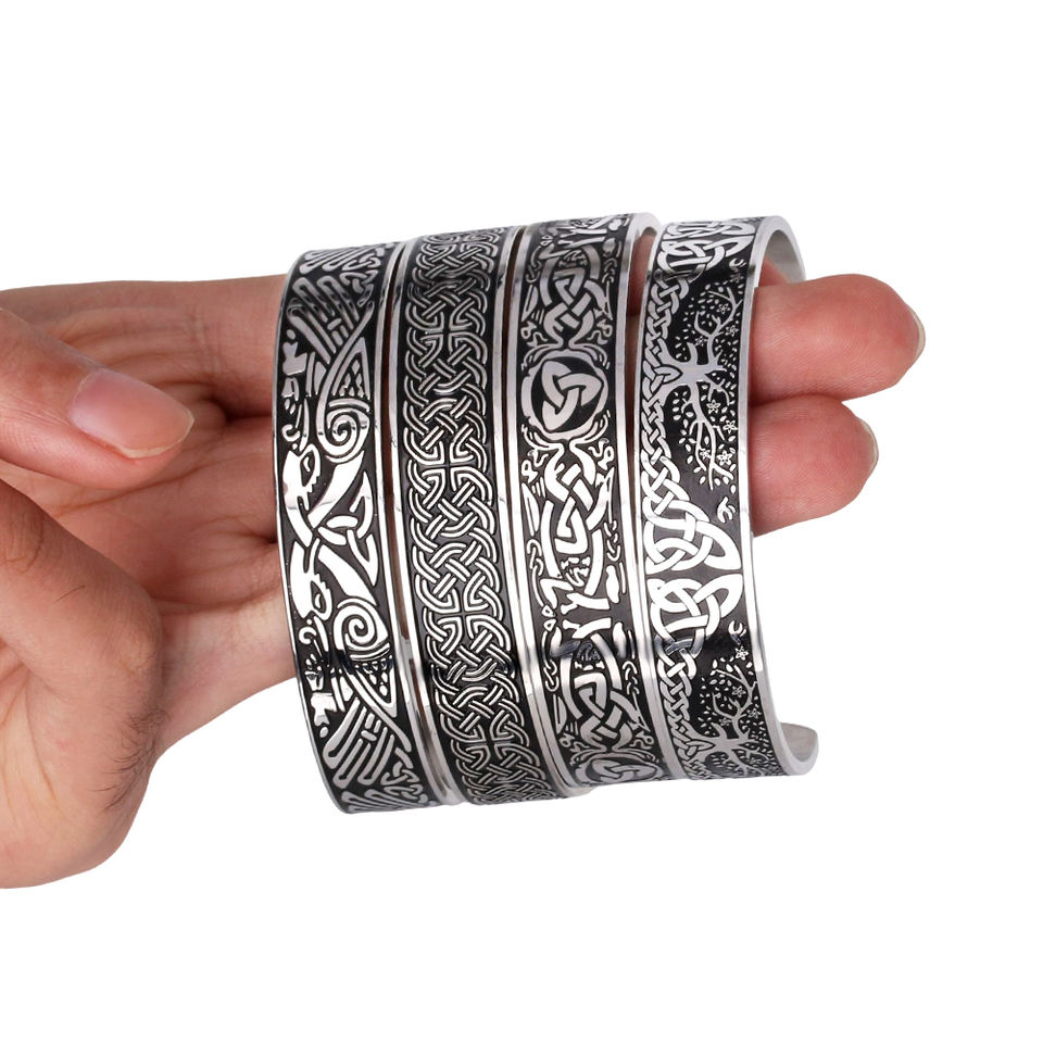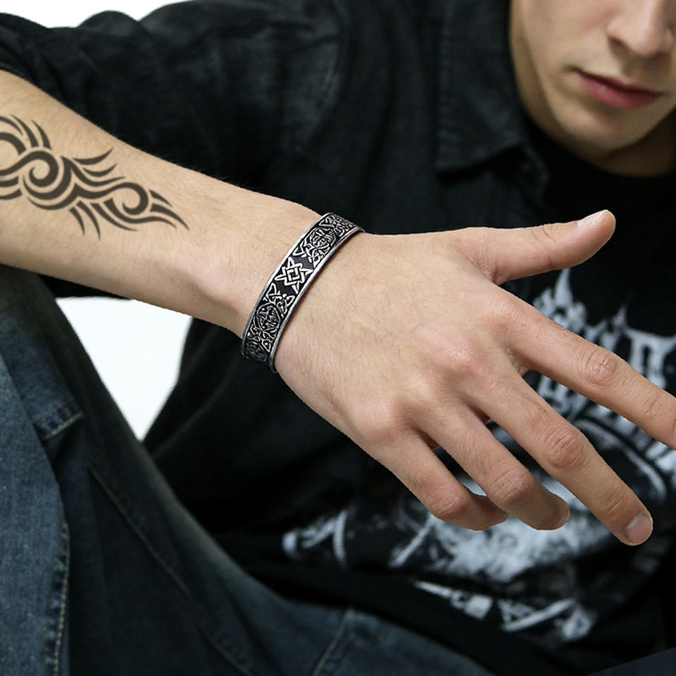 กำไลข้อมือสไตล์ไวกิ้ง นอร์ดิก เซลติก น็อต รูน วินเทจ สแตนเลส สำหรับผู้ชาย สไตล์พังก์ แบบเปิด กำไลหนา